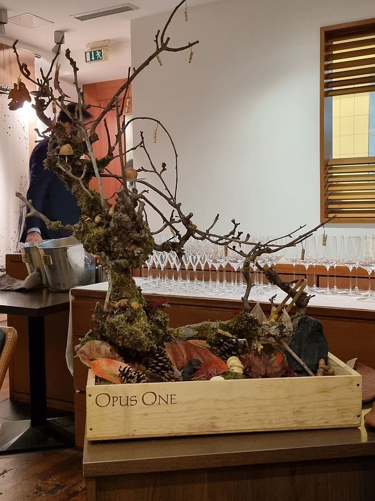Als Finale wurde dann ein Ast an den Tisch gerollert, wo noch versteckt die letzten Kleinigkeiten zu finden waren, die man zum Espresso als Abschluss bekam. Mal was anderes als die üblichen Kästen oder Wagen – sehr künstlerisch und sehr schön.