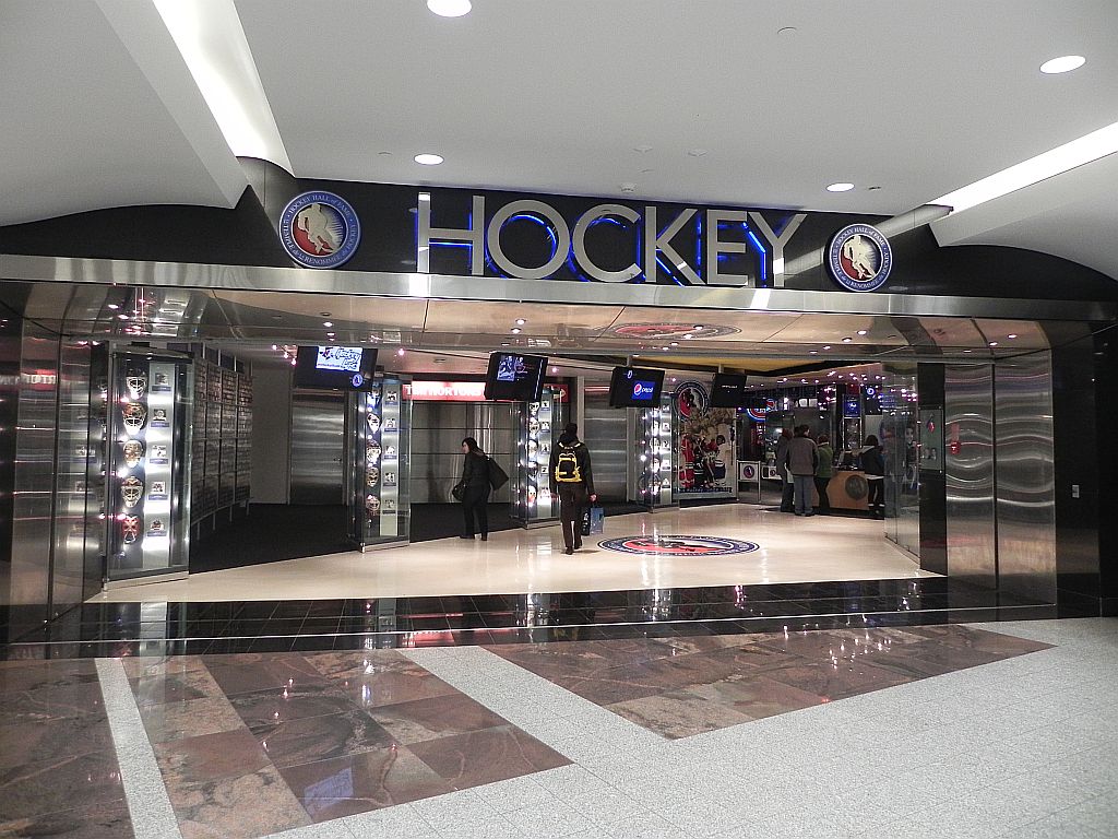 Der eigentliche Eingang befindet sich in einem angrenzenden Gebäude, aber wenn man einmal drin ist: Meine Güte, lieben diese Kanadier Eishockey!