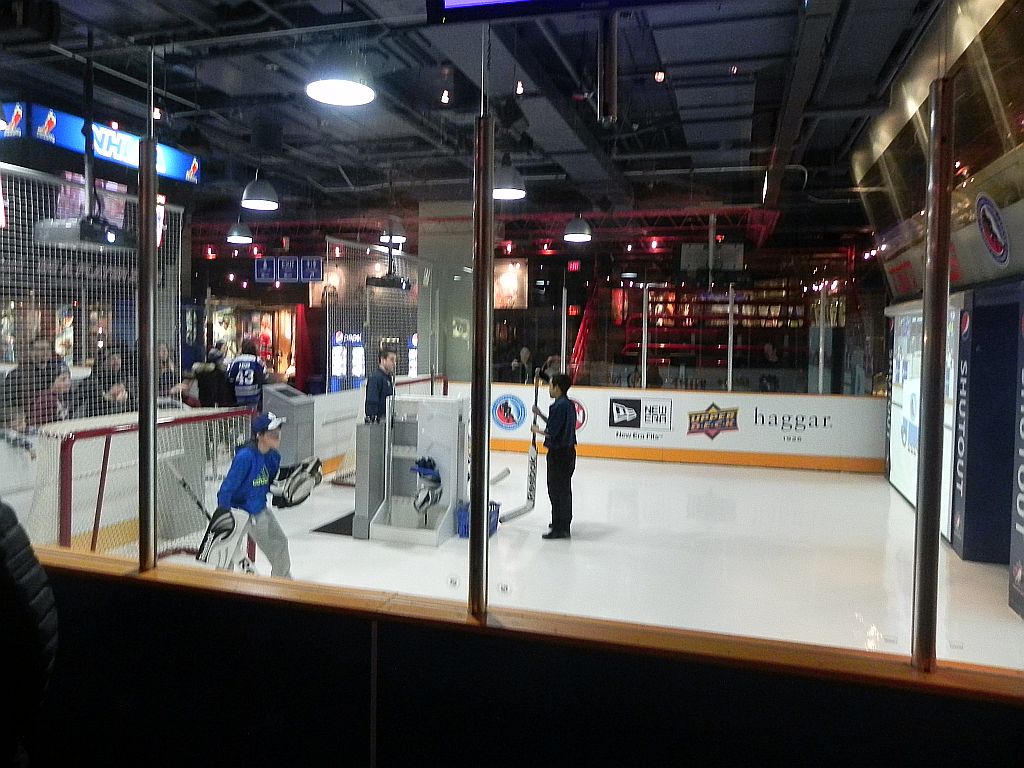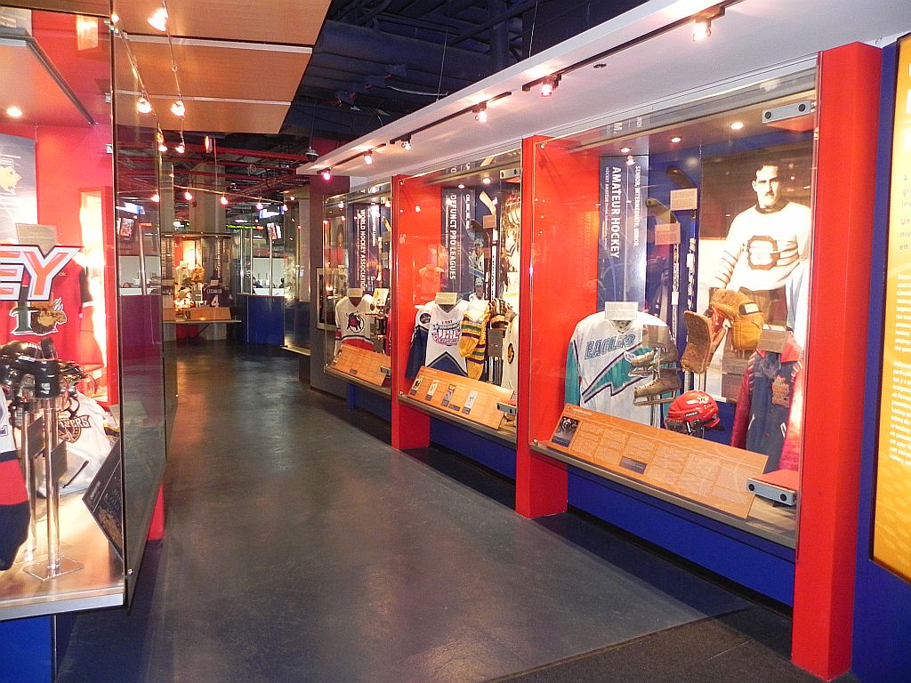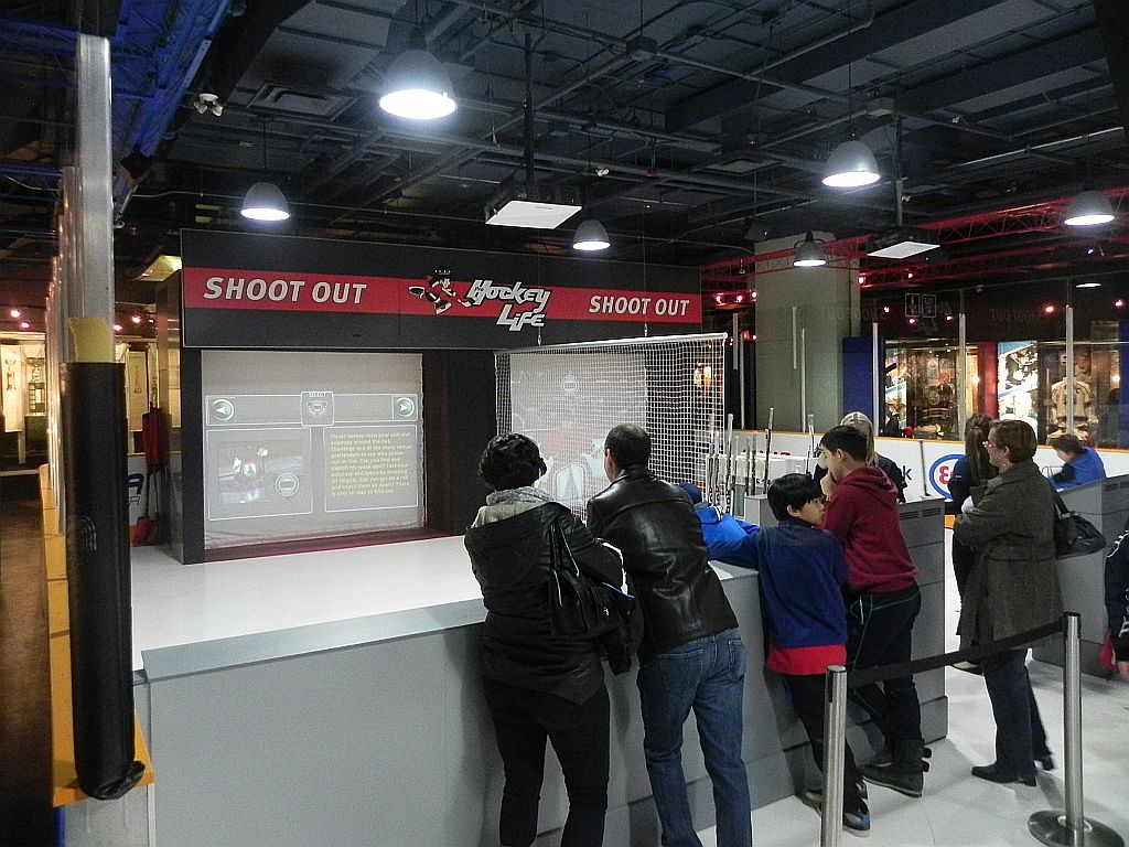 Gefühlte 10.000 Ausstellungsstücke von Schlägern, Pucks, Trikots und viele, viele Geschichten finden sich hier. Und dazu noch eine riese „Activity-Area“, wo man Sachen machen kann. Die Kanadier (vor allem die Kinder) standen an einer langen Schlange um hier auf Video-Leinwände zu schiessen oder von der Video-Leinwand (bzw. Löchern in derselben) Pucks vor die Kniescheibe geschossen zu bekommen.