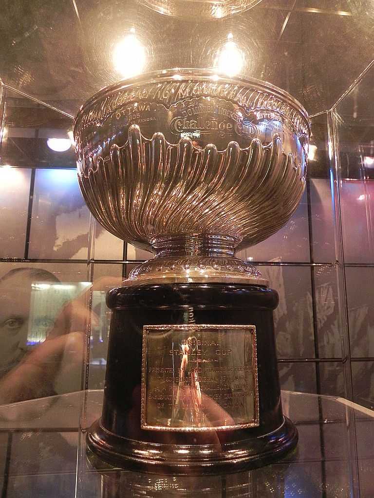 Und natürlich sind wir auch in die eigentliche Hall of Fame gegangen, wo alle Mitglieder aufgelistet sind und wo sich auch die begehrenswerte Pokale der NHL befinden. Eine Replik zum Fotografieren und die Originale (unter anderem den Stanley Cup von 1893).