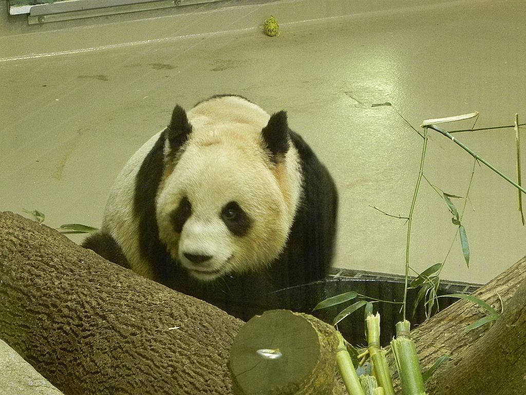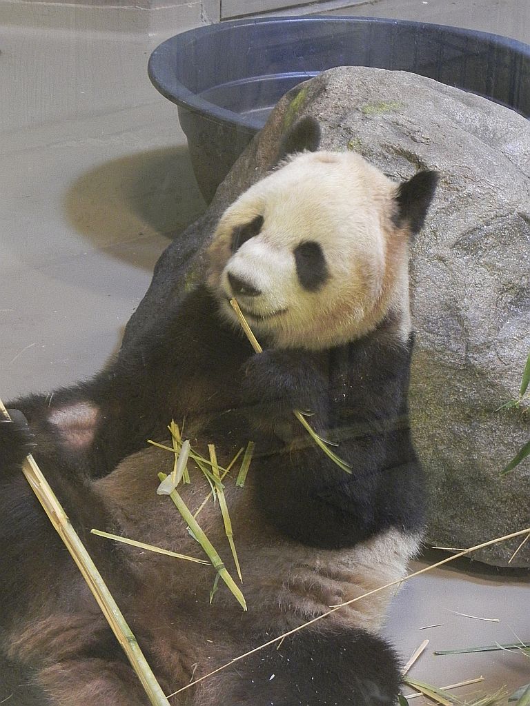 Aber dann ging es auch direkt zu den Objekten der Begierde. Beide Pandas waren wach und bekamen gerade ihre Gehege vorbereitet, um danach ihrer Lieblingsbeschäftigung nachgehen zu können: Dem Essen.