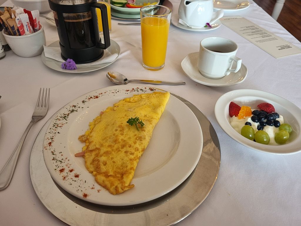 Nach dem gestrigen schönen Abend stärkten wir uns im großen Frühstücksraum mit einem leichten Frühstück. Denn heute sollte es sportlich werden.