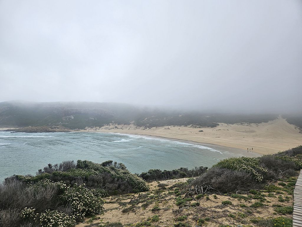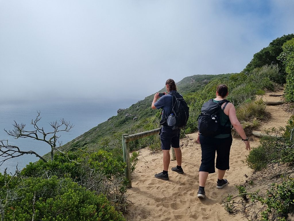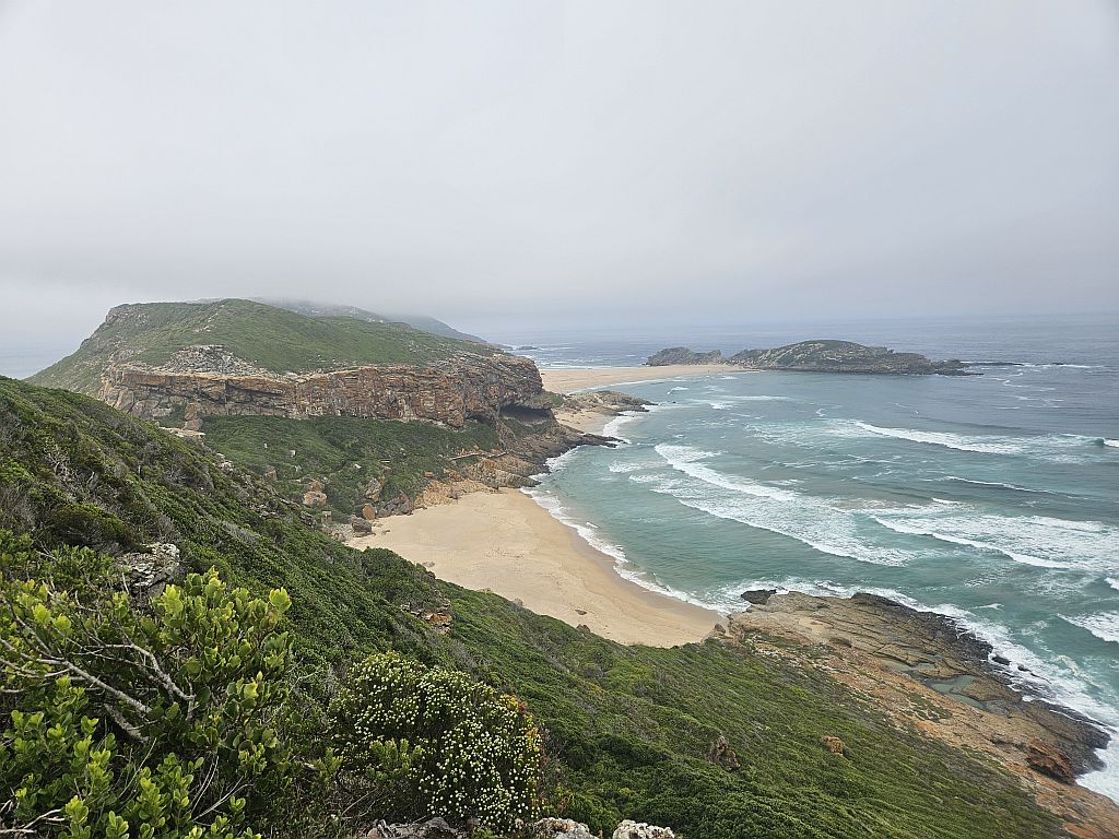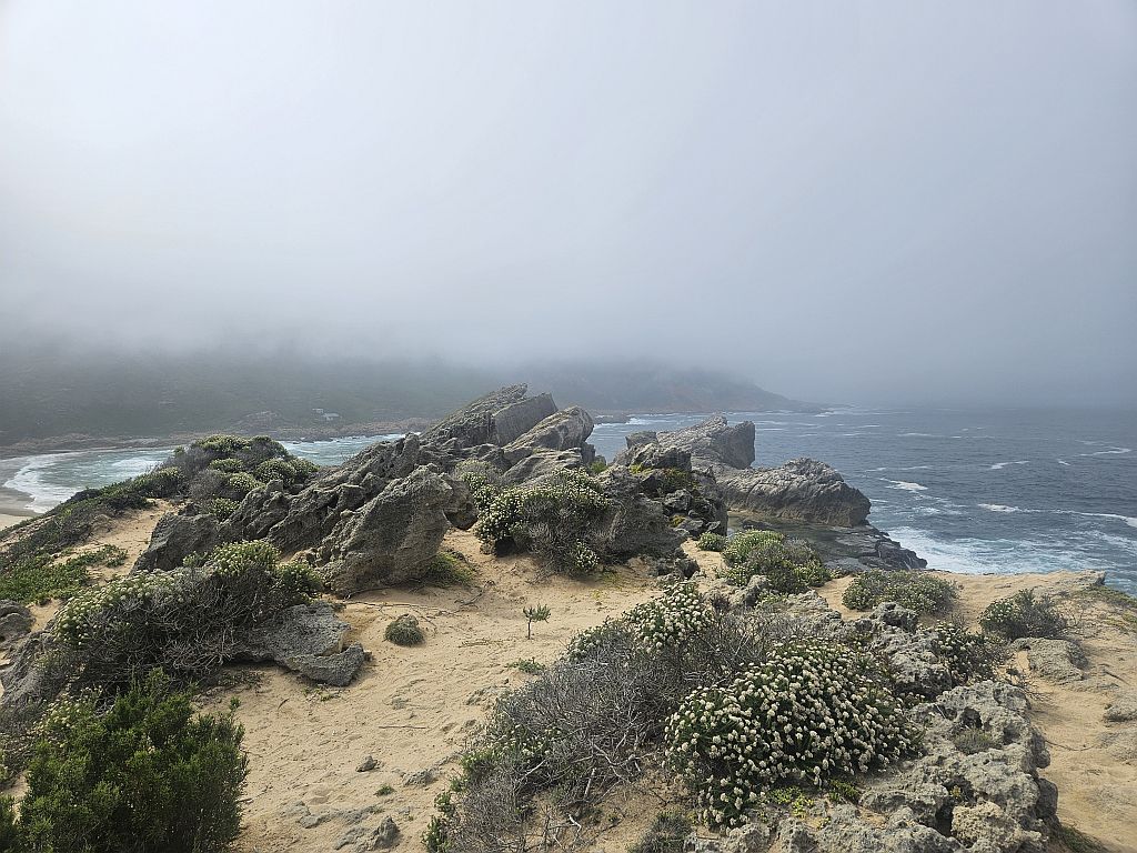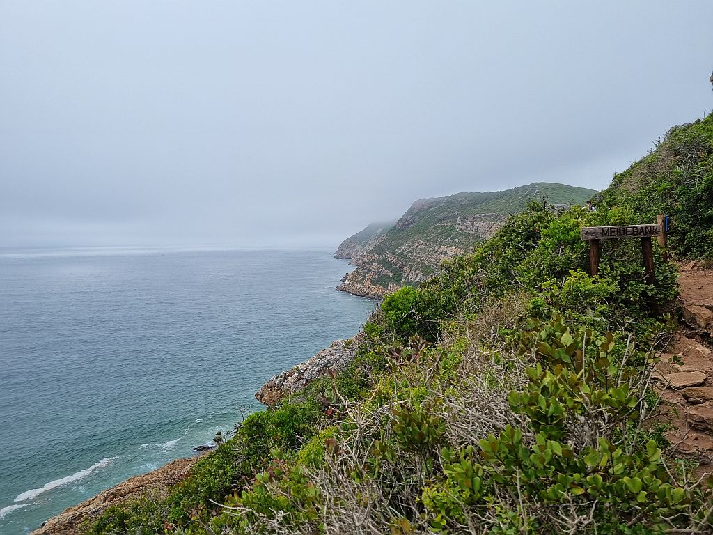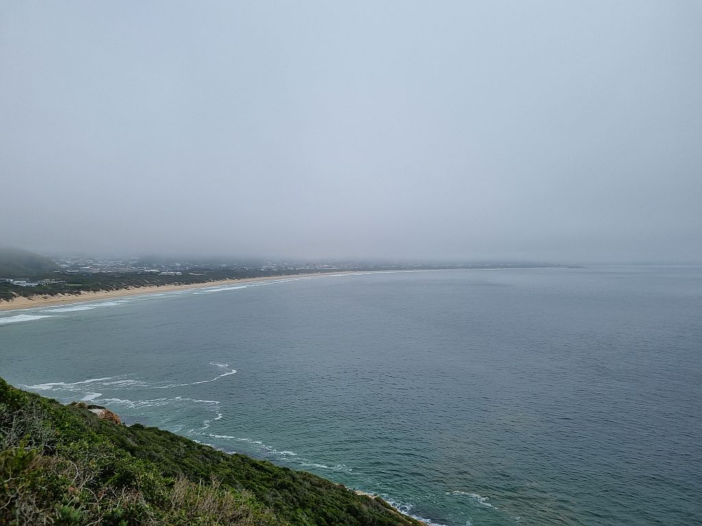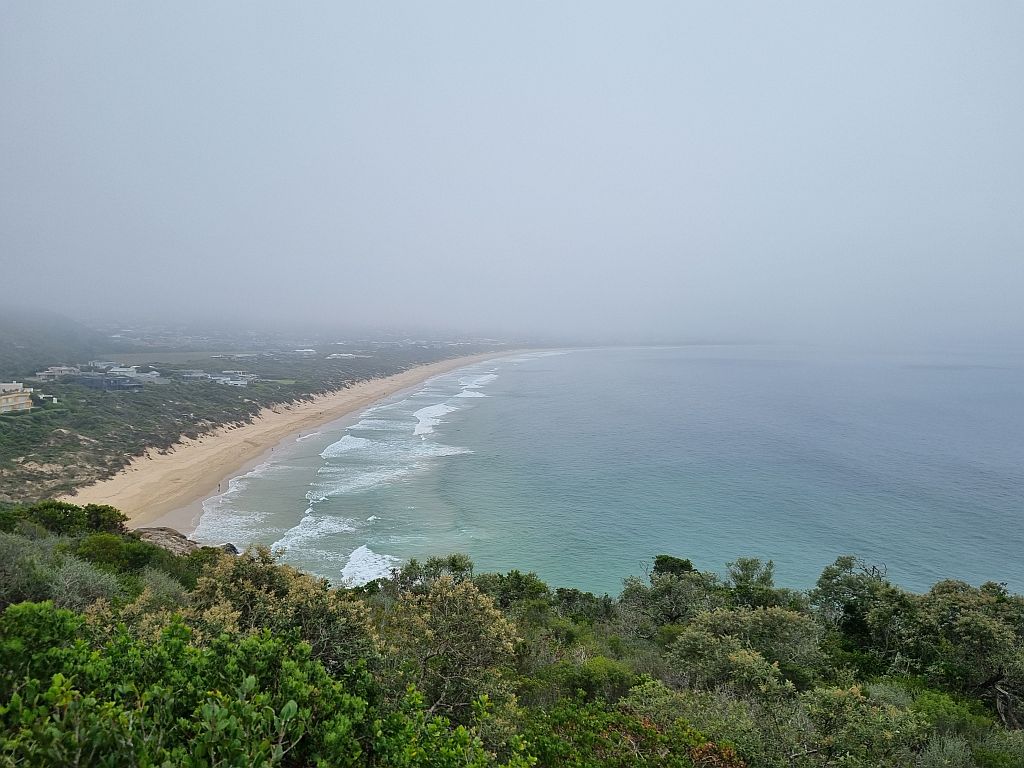 Zuerst war es aber schön und relativ eben. Der Blick auf Plettenberg Bay war aber leider durch den tief liegenden Nebel etwas getrübt.
