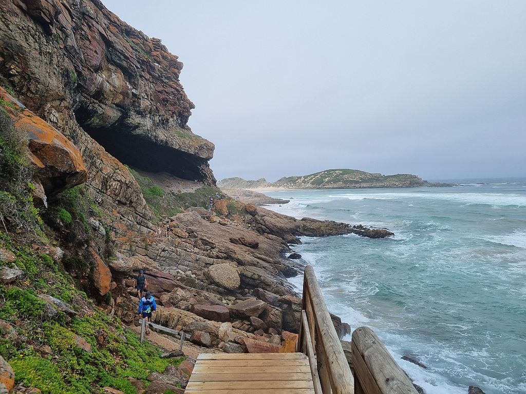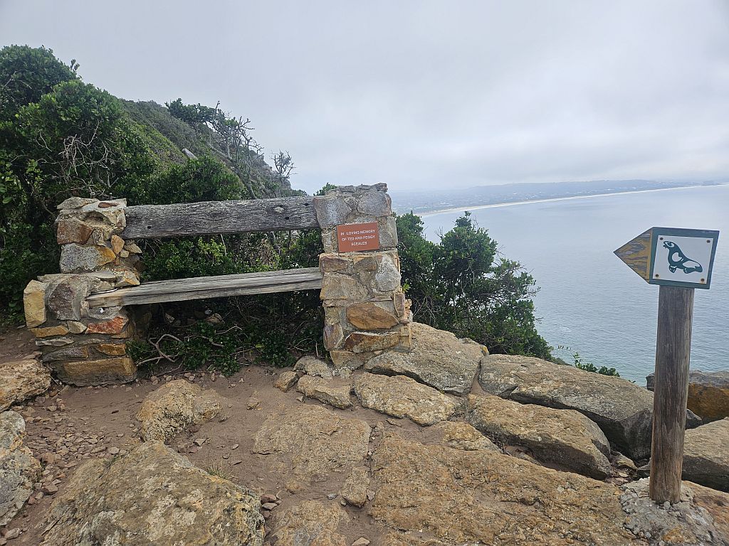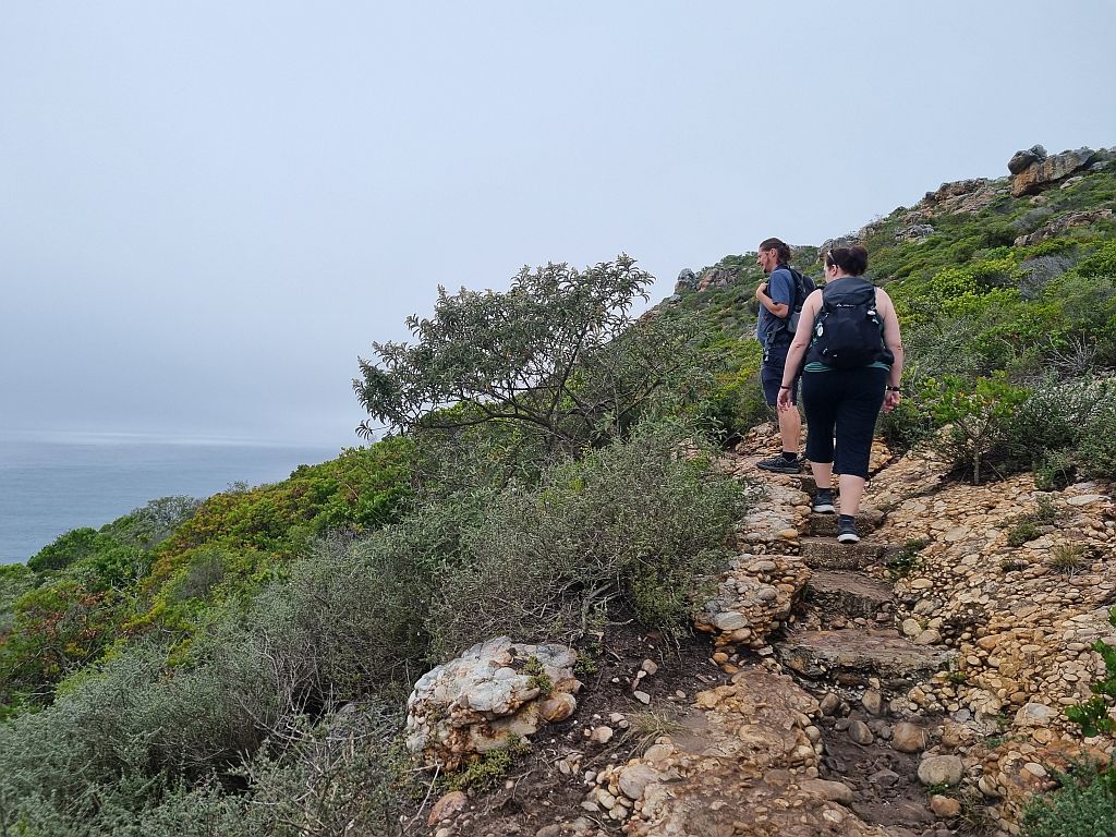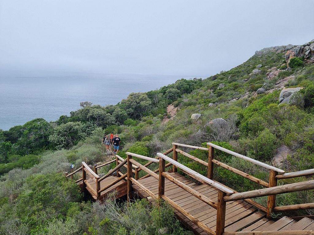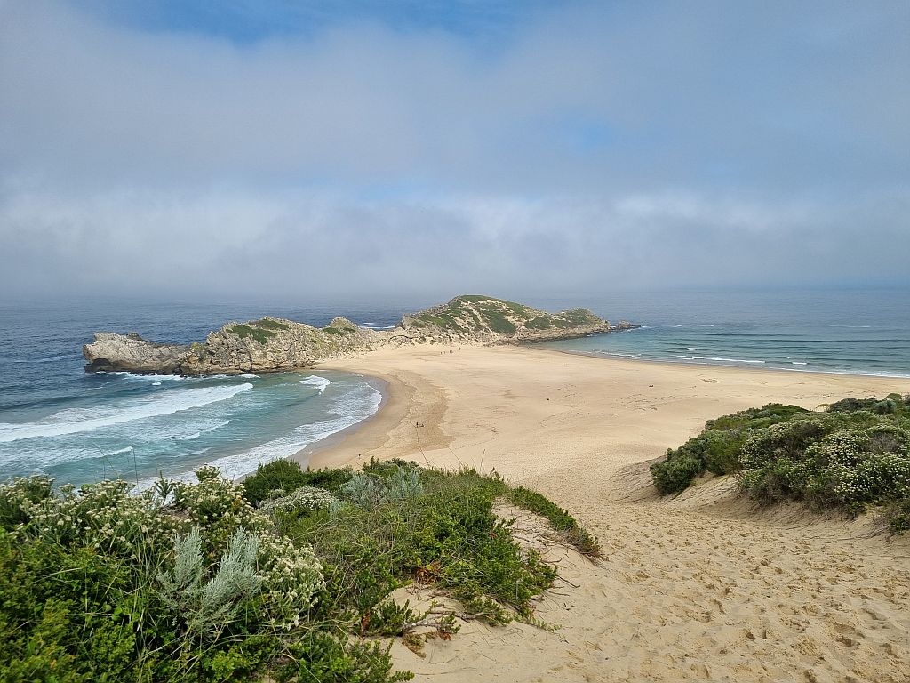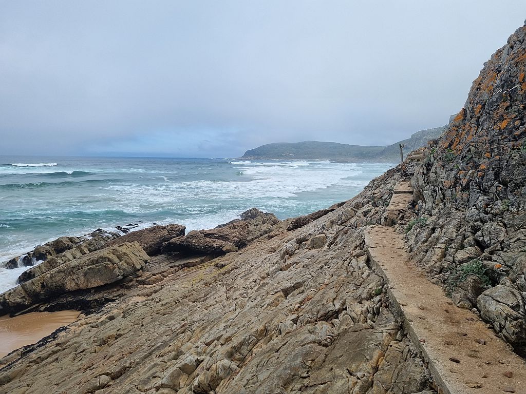 Zuerst war es aber schön und relativ eben. Der Blick auf Plettenberg Bay war aber leider durch den tief liegenden Nebel etwas getrübt.