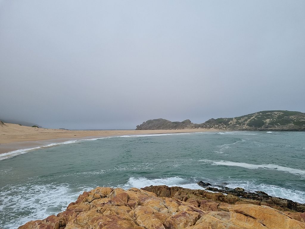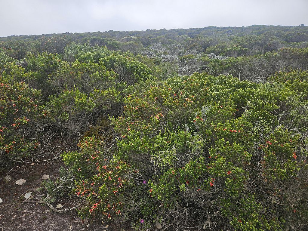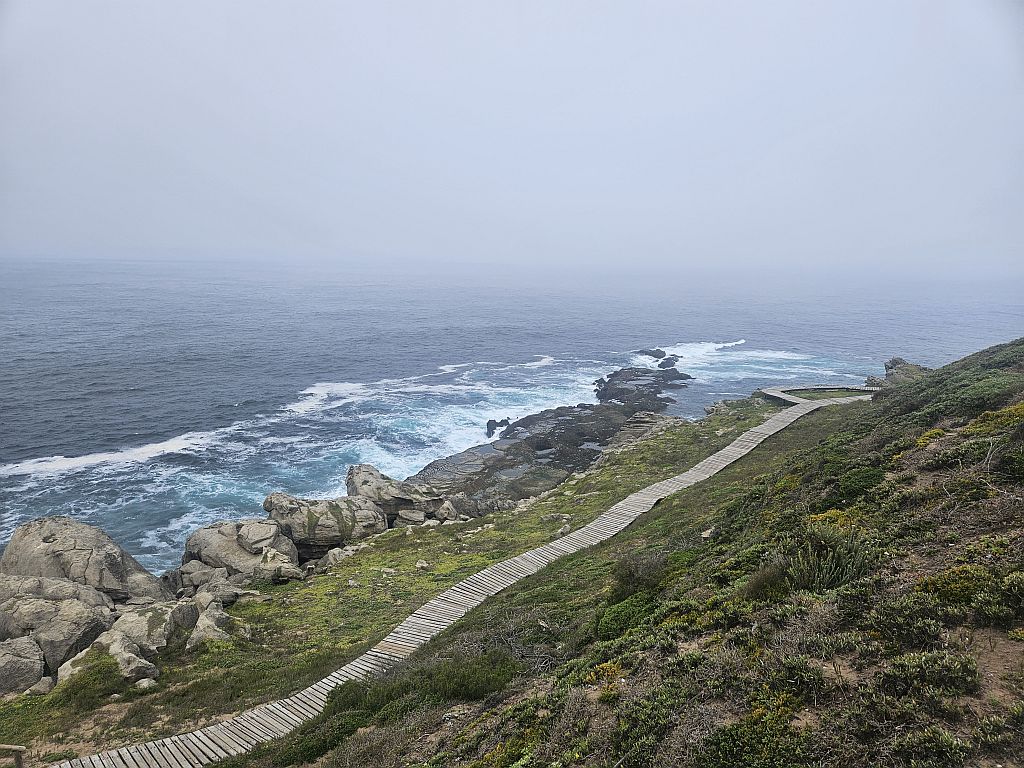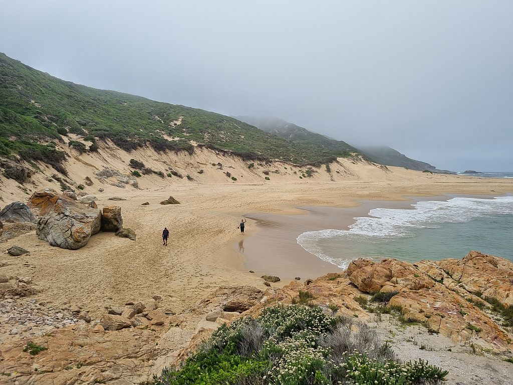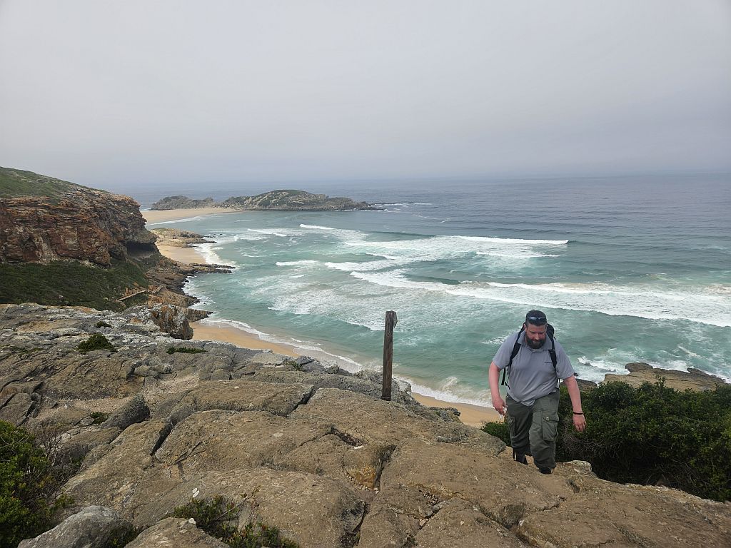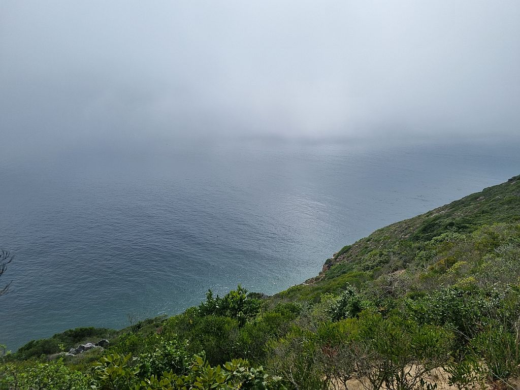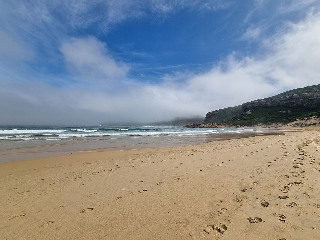 Zuerst war es aber schön und relativ eben. Der Blick auf Plettenberg Bay war aber leider durch den tief liegenden Nebel etwas getrübt.