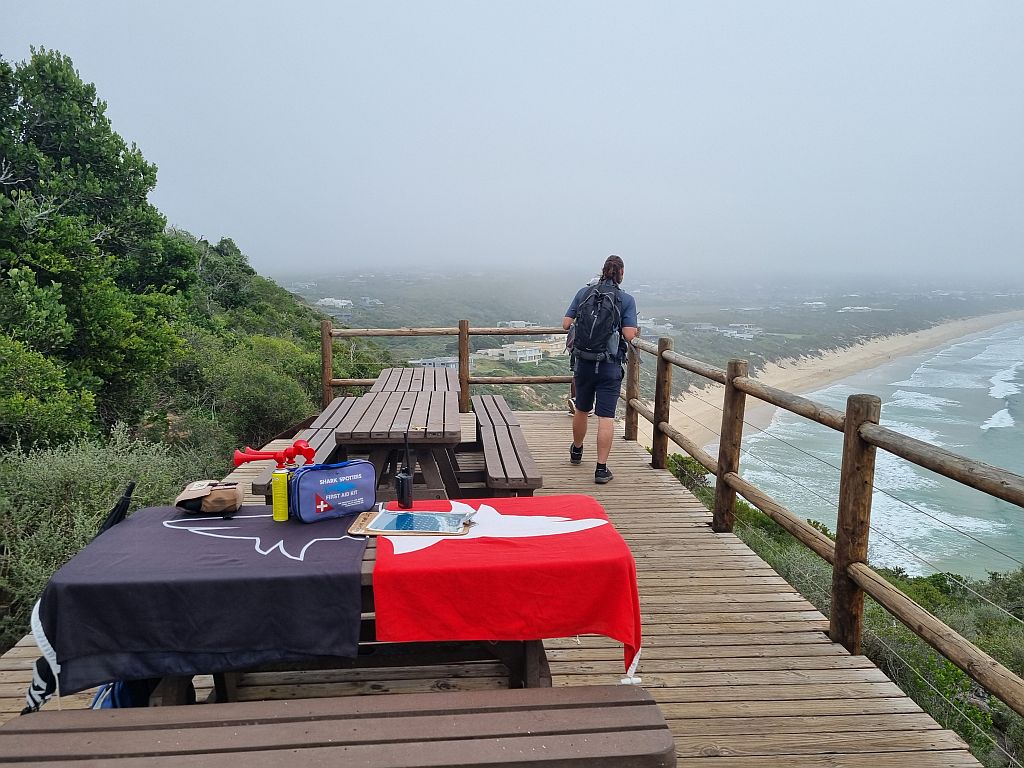Apropos „Fragen“: Fragen hatte vor allem Raymond an den dort stehenden Shark Spotter. Das findet man an vielen Stränden, denn die Gefahr von Haien für die Badenden sind alltäglich. Witzig war die Geschichte, als der Spotter eine äußerst seltene Hai-Art entdeckte und sich keinen Reim drauf machen konnte, was da jetzt herum schwamm. Erst ein an einen Experten in Kapstadt gesendetes Foto brachte ein Ergebnis: Ja, das ist ein Hai, nein, der ist nicht sooo gefährlich.