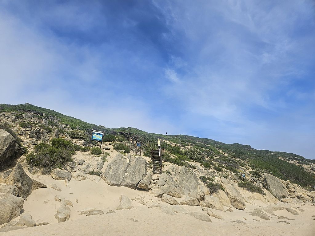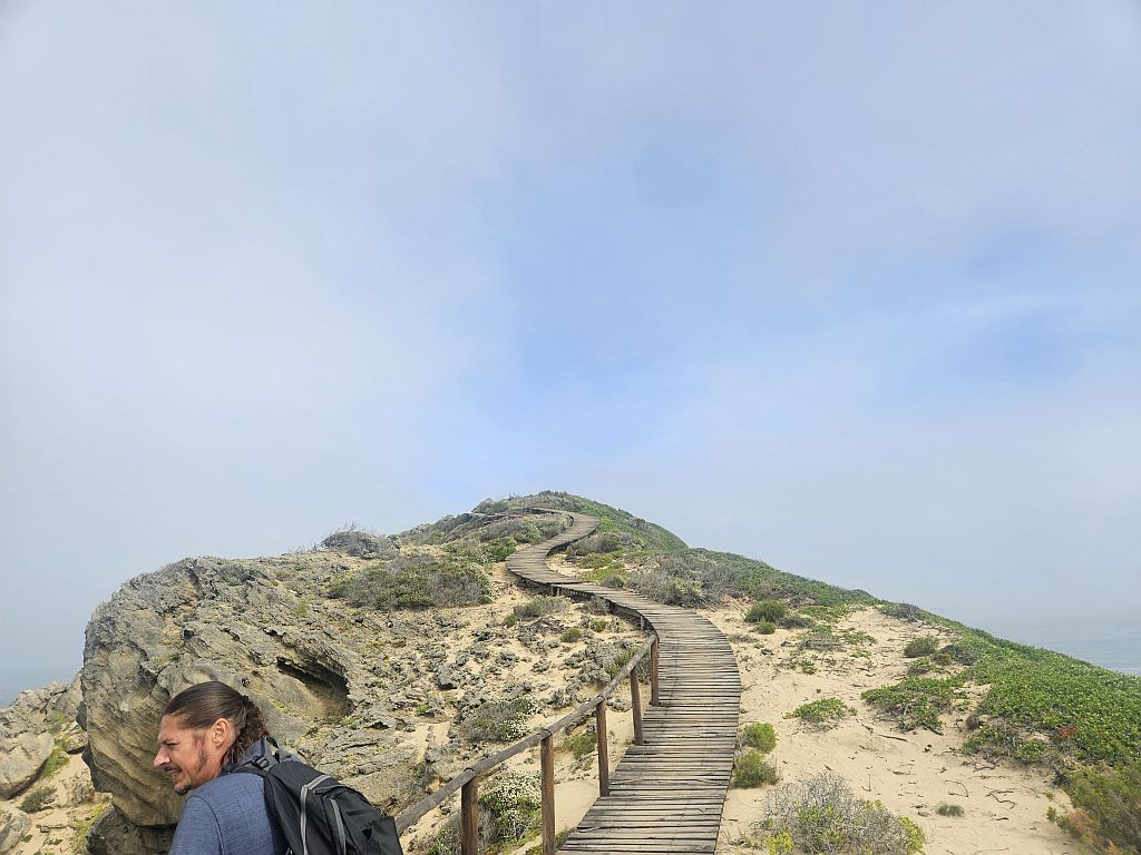Der Weg über den Strang war lang und im tiefen Sand beschwerlich. Ein Steg half dann zumindest ein wenig auf der kleine Insel zu dem Aussichtspunkt zu kommen.
