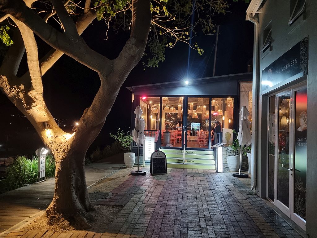 Gestern waren wir ja an der Waterfront, einem von zwei „Restaurant-Zentren“ von Knysna, wenn man so will. Heute Abend geht es zum zweiten Zentrum, der Thesen-Insel. Über eine Brücke ist diese aus dem Zentrum Knysnas erreichbar und es gibt dort einen Yachthafen mit 19 künstlichen Inseln. Es ist auch ein Ausgangspunkt für touristische Bootsfahrten zu den Knysna Heads, zwei Sandsteinklippen, die die Bootsausfahrt von dem Ästuar des Knysna River (englisch Knysna Lagoon) in den Indischen Ozean bilden. Benannt wurde die Insel nach der norwegischen Holzhändlerfamilie Thesen, die sich im 19. Jahrhundert in Knysna niederließ und 1922 eine Holzverarbeitungsfabrik auf der Insel gründete.