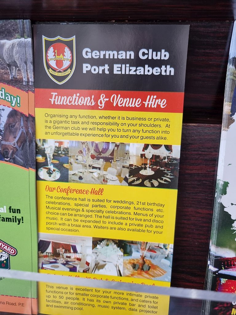 Die Silhouette des Donkin-Denkmals und des Leuchtturms wurde als Symbol für die Stadt Port Elizabeth verwendet, so zum Beispiel im Logo des Deutschen Clubs, wie wir in der kleinen Tourist-Info sehen durften.