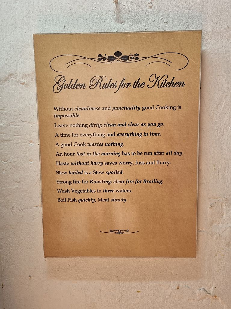 Für die Bediensteten gab es sehr „hilfreiche“ Hinweise. „Haste without hurry saves worry, fuss and flurry“ merken wir uns auf jeden Fall, sorry für unser soziales Umfeld, wenn das irgendwann nervt … 😉