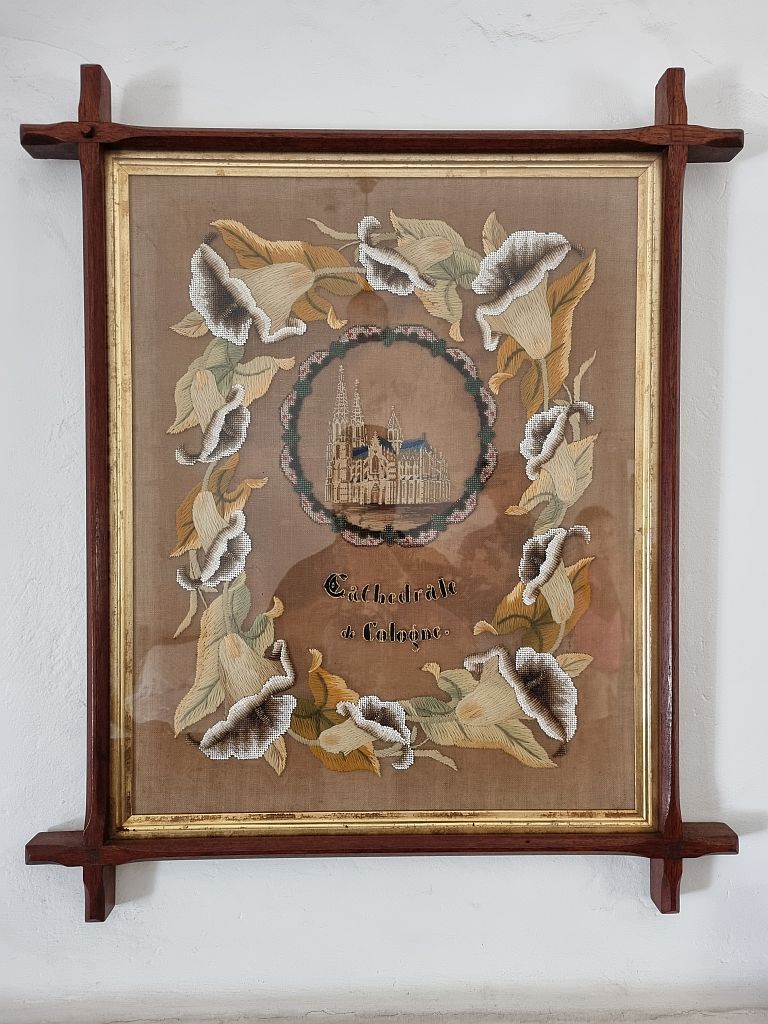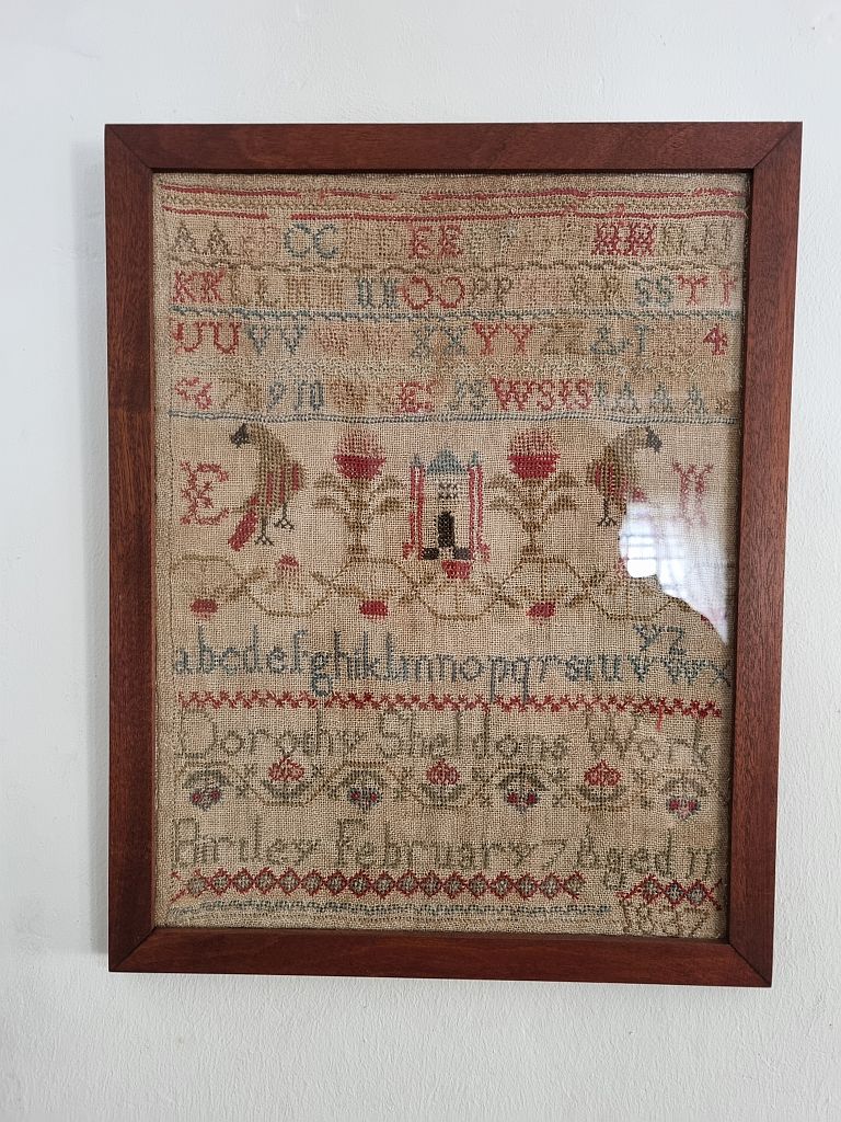 Neben Alltagsgegenständen dann auch viel Persönliches wie diese Übungs-Stickerei. Unser Guide dazu: Naja, Netflix oder Amazon Prime hatten die halt damals nicht, da musste was anderes her …“.
