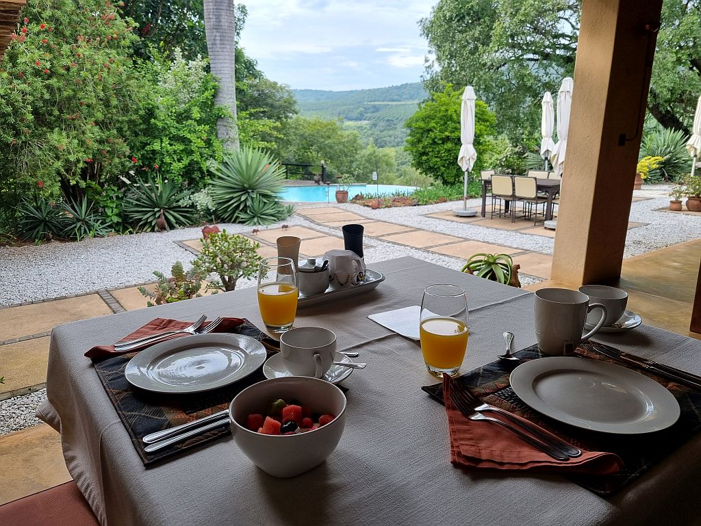 Nach einer recht ruhigen Nacht, nur ab und an unterbrochen durch unbekannte Geräusche und die dann schnell einsetzende Gewissheit, dass wir ja hier alleine sind, klingelte der Wecker um 8 Uhr morgens. Die beiden Damen des Hauses hatten schon den Frühstückstisch vorbereitet und den schönsten Blick ausgewählt. Guter Orangensaft, frisches Obst und ein guter Kaffee halfen wach für den Tag zu werden.