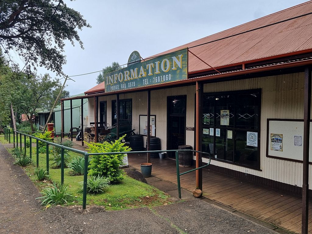 Denn wir wollten eigentlich mal schauen, was heute überhaupt geht. Die Wetterberichte sagten auf jeden Fall dunkle Wolken und Regenschauer voraus, was jetzt bei einem Canyon mit schönen Weitblick nicht wirklich hilfreich ist. Zum Nachmittag sollte es wieder etwas aufklaren, also planten wir in Graskop spontan um und fuhren zu einer etwas nebenan liegenden Stadt namens „Pilgrim´s Rest“.