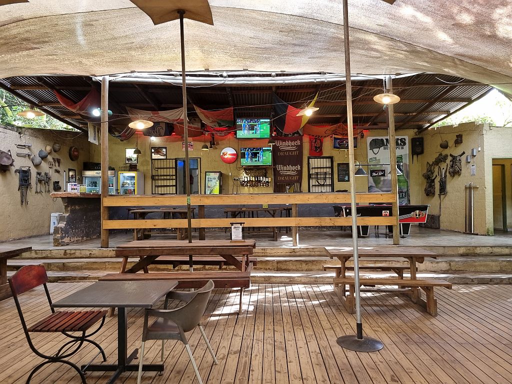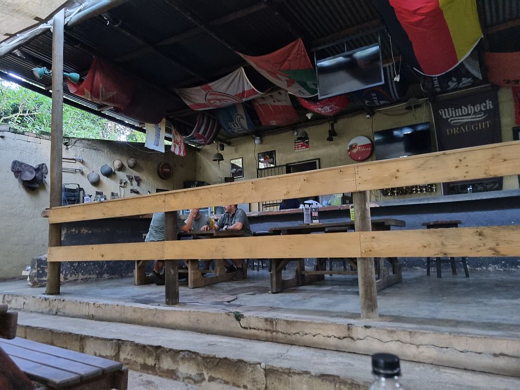 Den ganzen Tag hatten wir nichts gegessen und dementsprechend hing der Magen auch etwas durch. Dabei erinnerten wir uns an einen Ratschlag des Verwalters unserer Lodge, falls wir hungrig sein sollten und Lust auf was Besonderes hätten: Tanks Bush Pub.