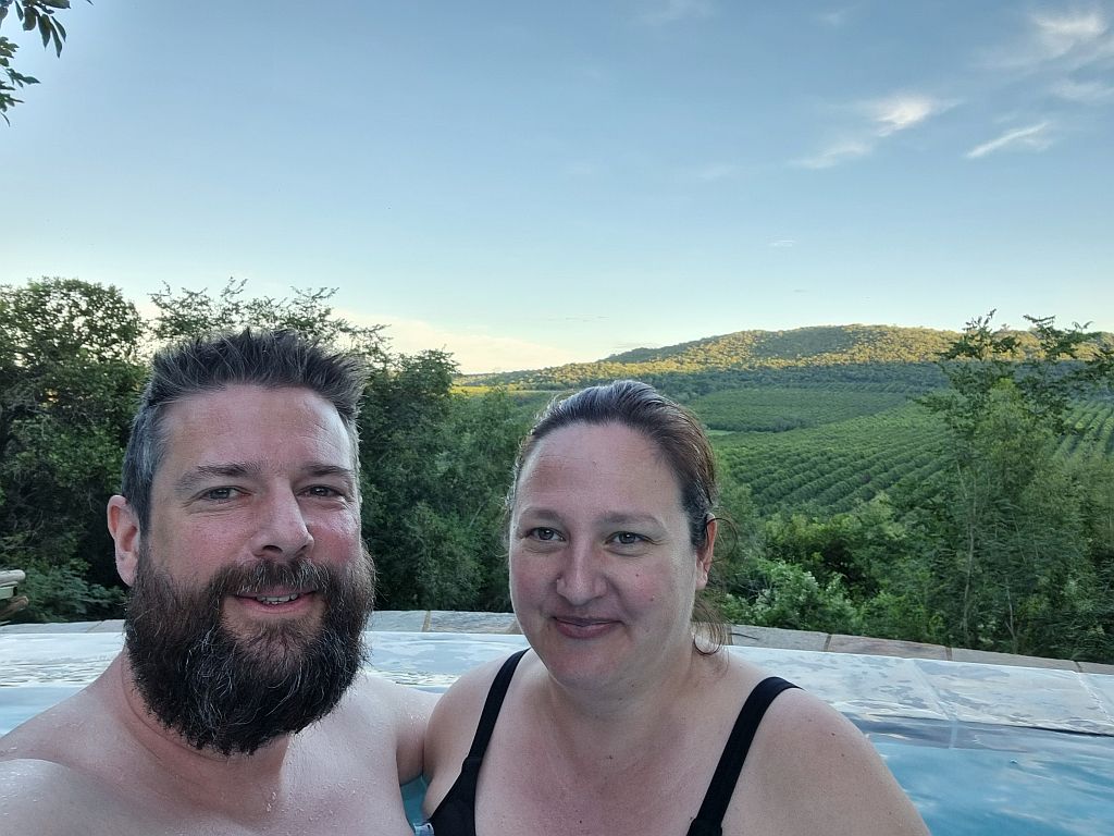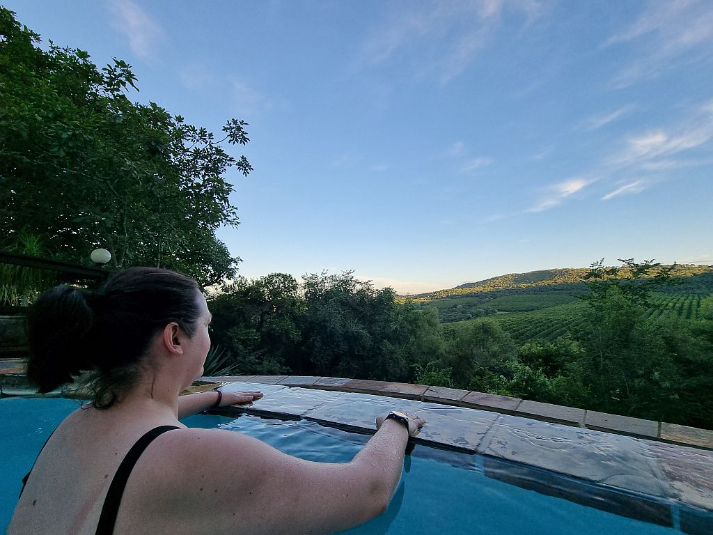 Denn der Pool ist echt ein Augenschmauß. Erst Recht, weil nun das Wetter endlich auflockerte und die Abendsonne den gegenüber liegenden Hügel anstrahlte.