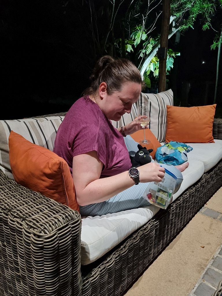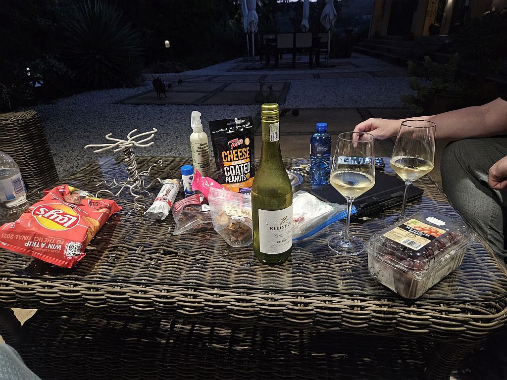 Danach duschten wir nochmal warm, zogen uns was bequemes an und holten unseren Weißwein aus dem Kühlschrank. Genau wie diverse andere Süßigkeiten und Snacks, die wir noch hatten. Ab morgen würde es ja Vollpension geben, also gab es keinen Grund das alles aufzubewahren.