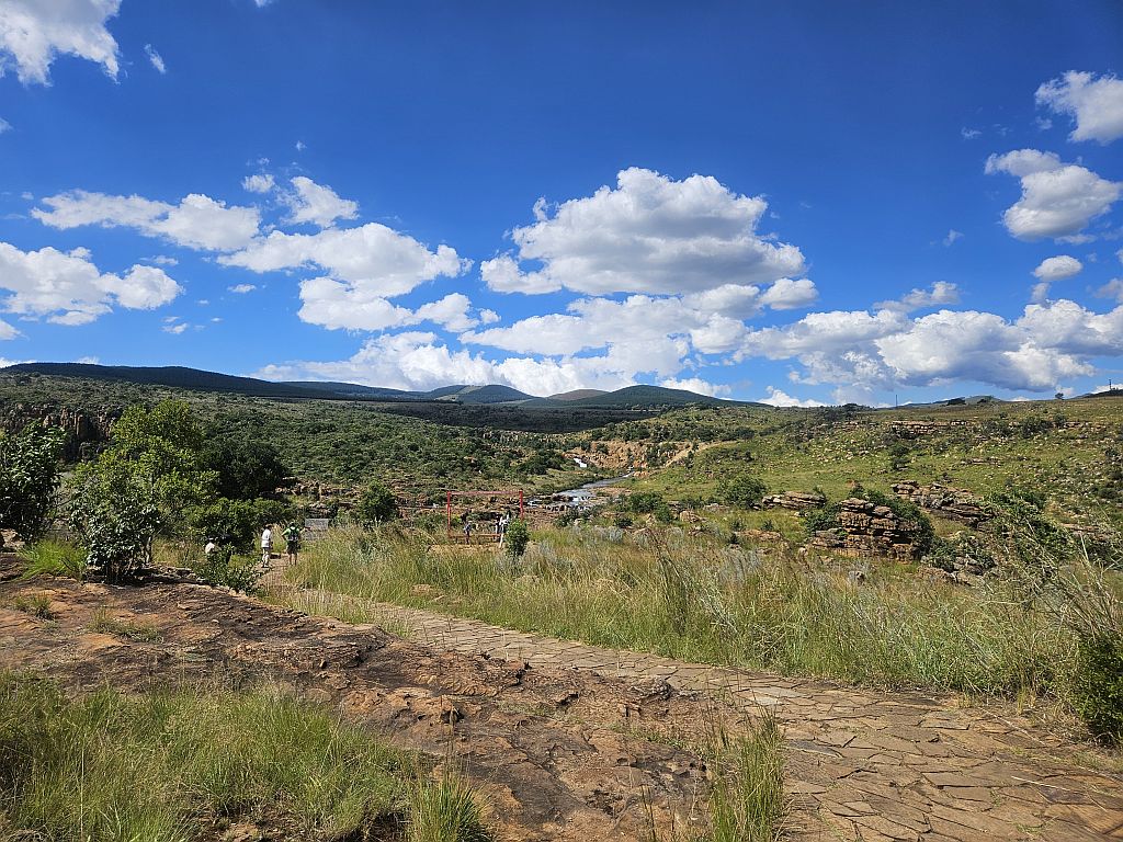 Wir gingen also direkt zum ausgeschilderten Aussichtspunkt, froh, dass auch hier wieder recht wenige Touristen da sind. Ein Rondavel ist übrigens ein afrikanischer Hüttenstil, der in der Literatur als „Kegel auf Zylinder“ oder „Kegel auf Trommel „bezeichnet wird. Das Wort stammt aus dem Afrikaans „rondawel“.
