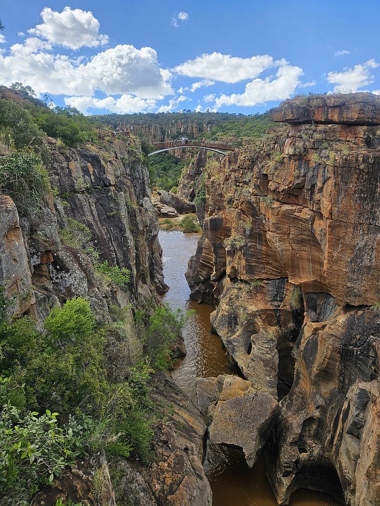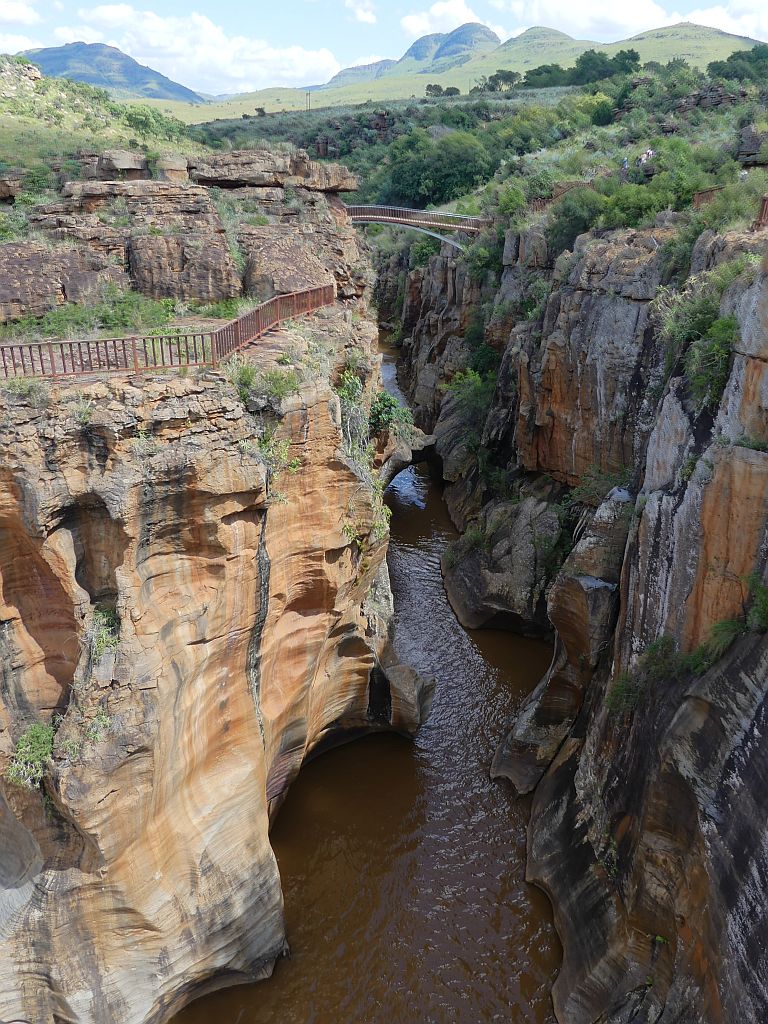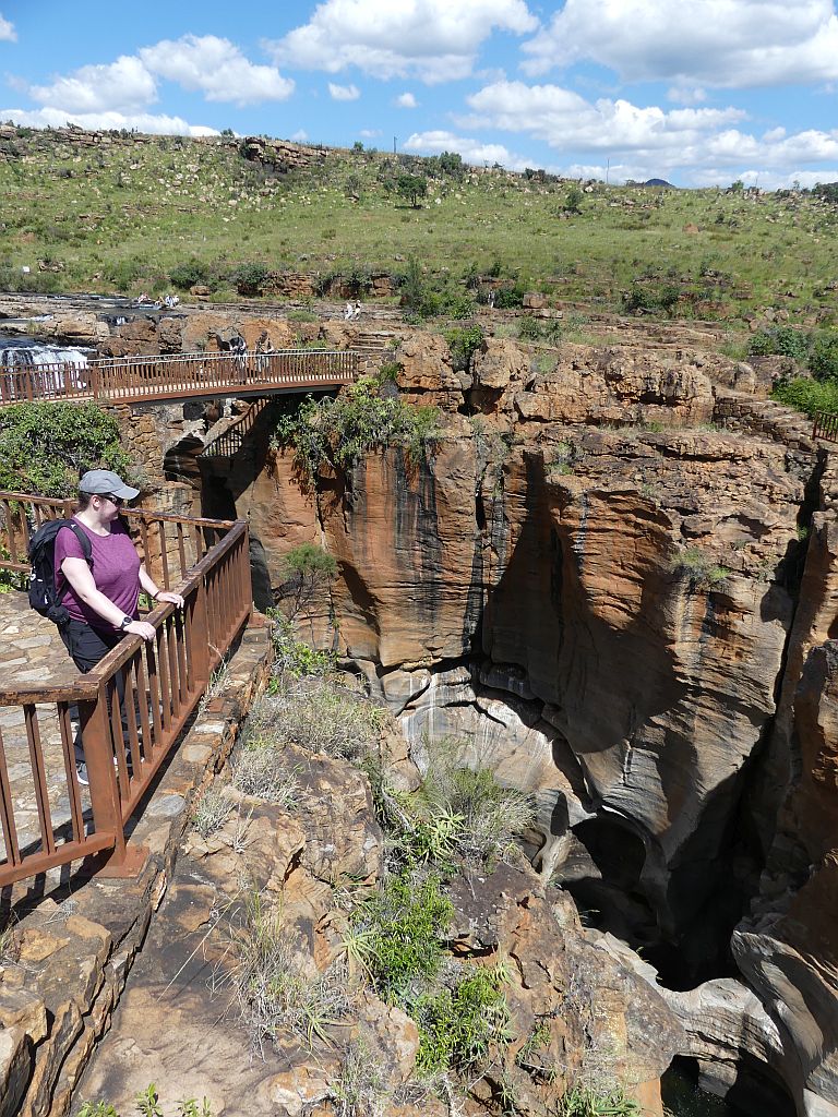 Fußgängerbrücken verbinden die verschiedenen Aussichtspunkte über die Potholes und die Schlucht flussabwärts. Und über eine dieser gingen wir jetzt. Sehr beeindruckend.