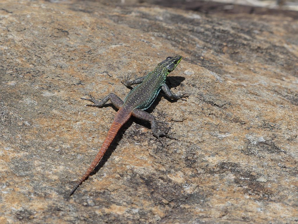 Und auch hier wurden wir von kleineren Tieren begleitet wie dieser süßen, sehr bunten Echse, die sich sehr fotogen präsentierte.