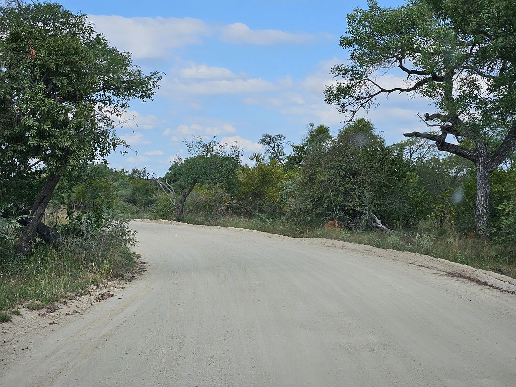 Daneben gibt es hier auch noch Giraffen, Nilpferde, Impalas, Gepard, der afrikanische Wildhund und noch andere. Aber erst einmal müssen wir bis zur Lodge kommen, in der wir gebucht waren. Was angesichts der doch eher staubigen Straße schwieriger als gedacht war.