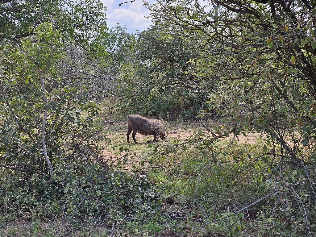 Oh und etwa nach 300 Metern hatten wir schon das erste Tier gesehen, was seelenruhig hinter einem Busch nach Essen suchte: Ein Warzenschwein. Weltweit seit dem König der Löwen als „Pumbaa“ bezeichnet