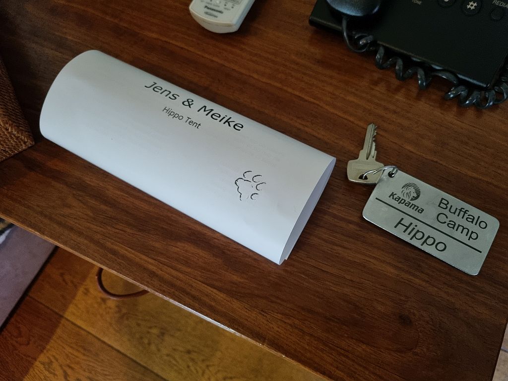 Trotzdem kamen wir an, wurden von Natalie, der Assistent Camp Managerin, in Empfang genommen, mussten ein paar Formalitäten erledigen und bekamen einen erfrischenden Willkommensdrink. Natürlich wurden unsere Koffer in der Zwischenzeit in unser Zelt gebracht und das Auto für uns geparkt. Hier macht man sehr wenig selber, man lässt machen.