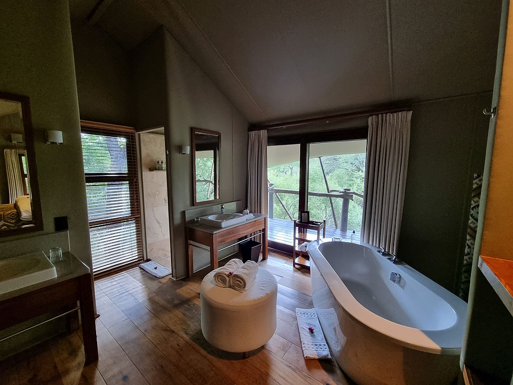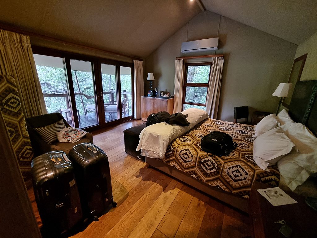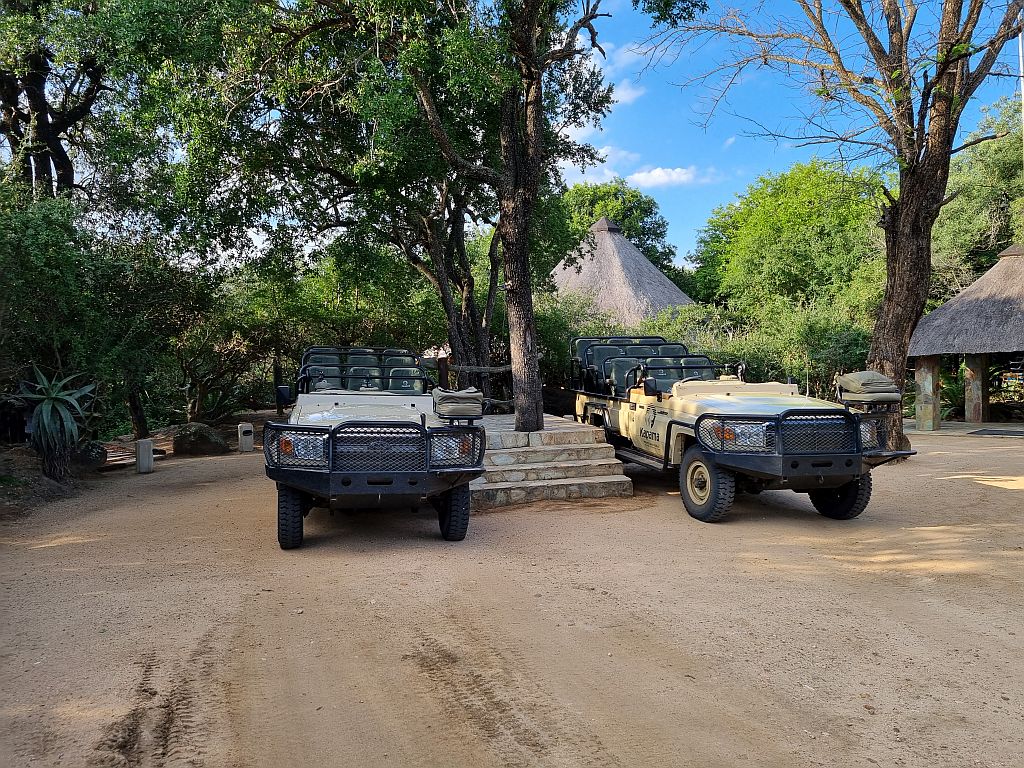 Alles klar, das würde also eine etwas andere Kategorie als die bisherigen Unterkünfte werden. Für den 16:30 Uhr „Game Drive“, wie das Suchen nach Tieren im Reservat heißt (Safari wird eher für längere, mehrtätige Fahrten verwendet und hat immer noch den Hintergrund des „Tiere jagen“), sollte man so gegen 16 Uhr zum zentralen Bereich kommen. Die Land Rover standen schon bereit, selbstverständlich mit einer Treppe als Einstiegshilfe.