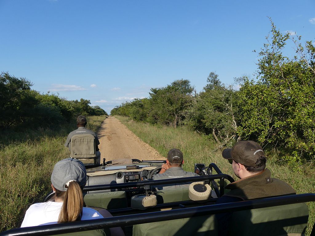 Und so ging es dann los, rumpelnd und hoppelnd über die Staubpisten im Kapama Private Game Reserve.