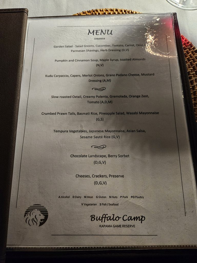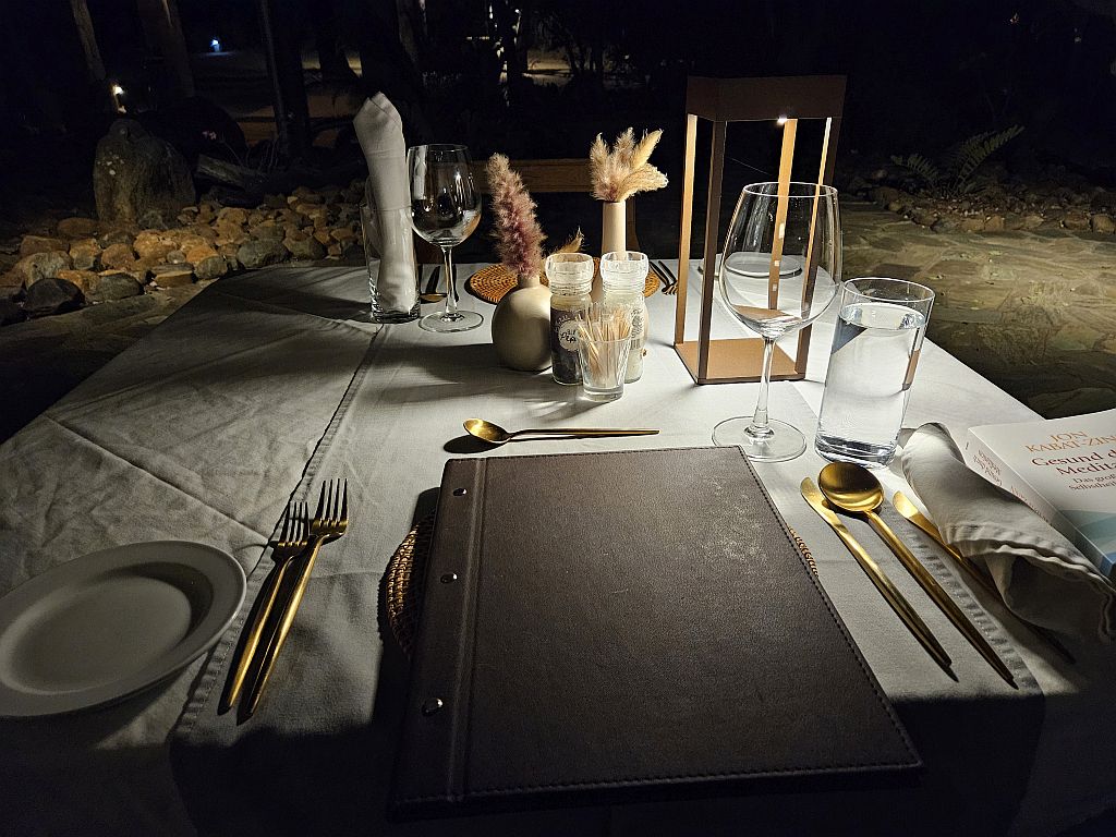 Und Jens Magen machte hier gar nicht mehr mit, hatten wir in Hazyview noch gehofft, dass das mit dem Magen-Darm-Infekt überstanden war, ging es hier wieder von vorne los. Daher musste Meike alleine zum Abendessen gehen, was sie mit etwas Lektüre dann auch machte.