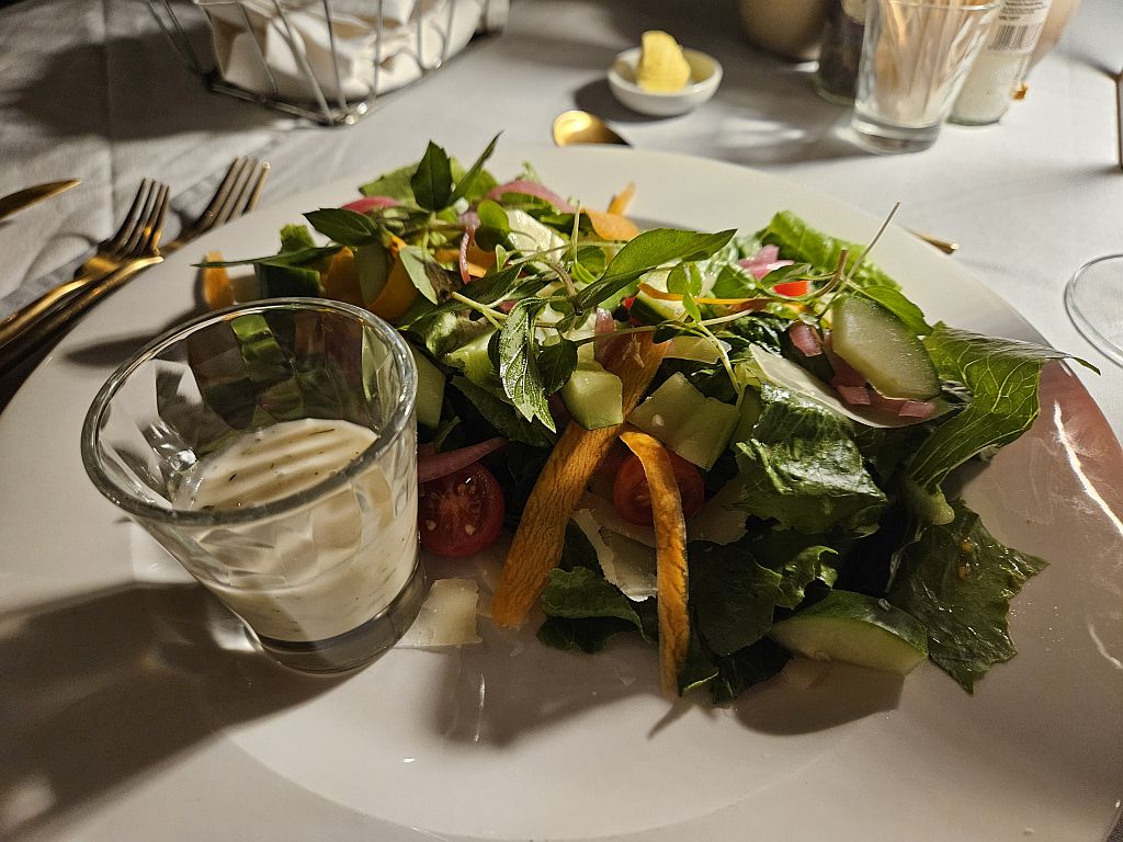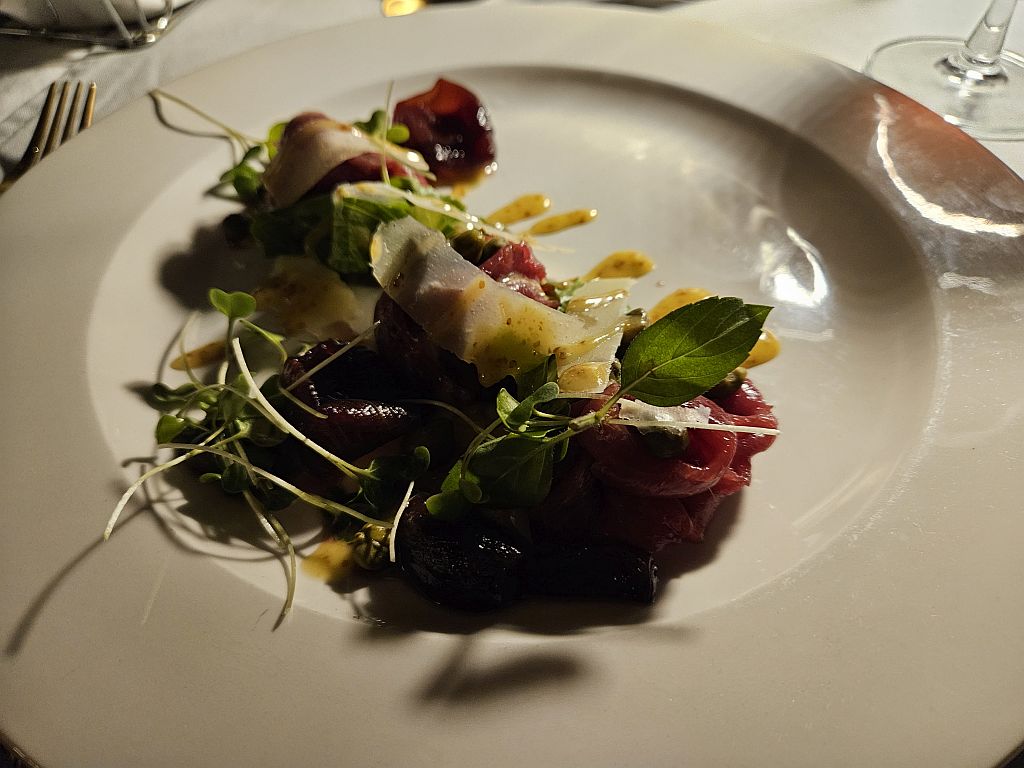 Meike hatte nicht sooo viel Hunger und beschränkte sich daher auf einen Salat und das Carpaccio vom Kudu.