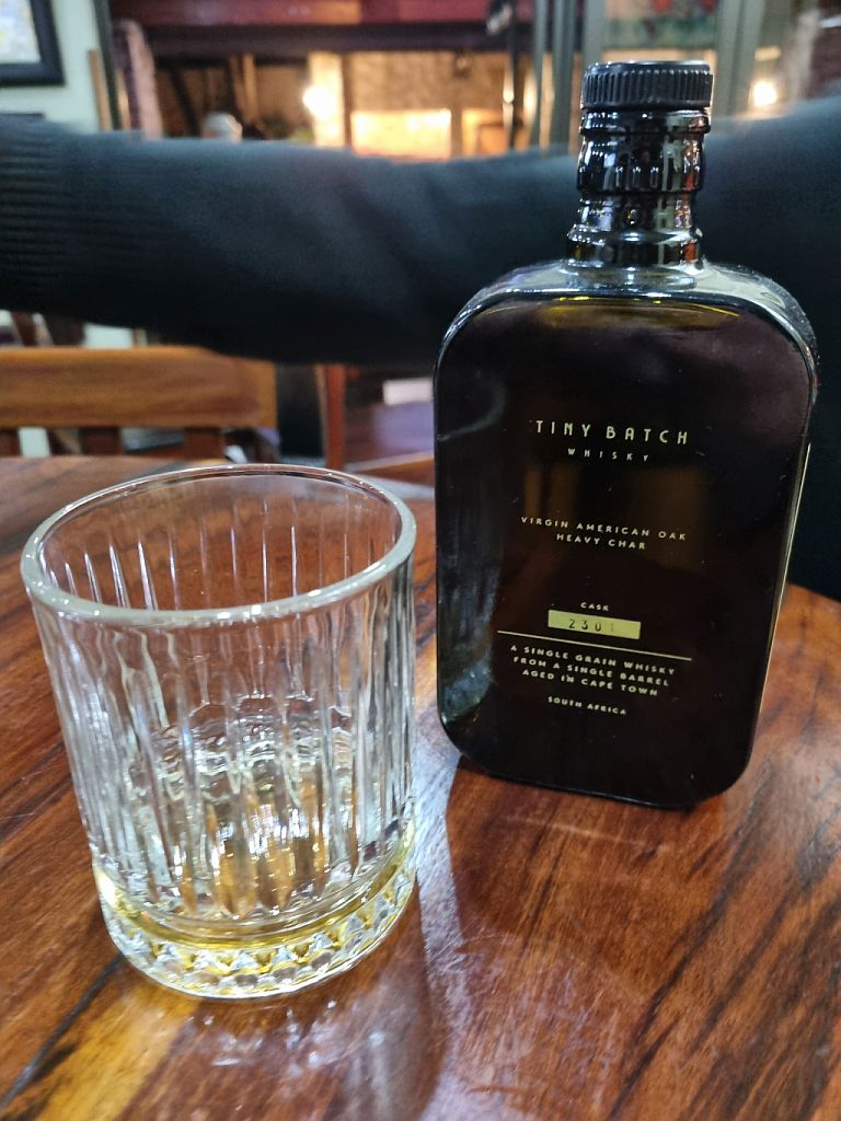 Moonshine ist ein Begriff für oftmals illegal selbstgebrannten Schnapps. Dieser hier war schon offiziell und stammte, wie der Whisky zuvor, aus Kapstadt von Pienaar & Sons. Und dieses Getränk werden wir versuchen nach Deutschland zu bekommen, denn der Geschmack von gerösteten Marschmallows mit dem leichten Raucharoma und der Vanille aus den Fässern war der Knaller. Wortwörtlich ein Dessert in Schnapps-Form.