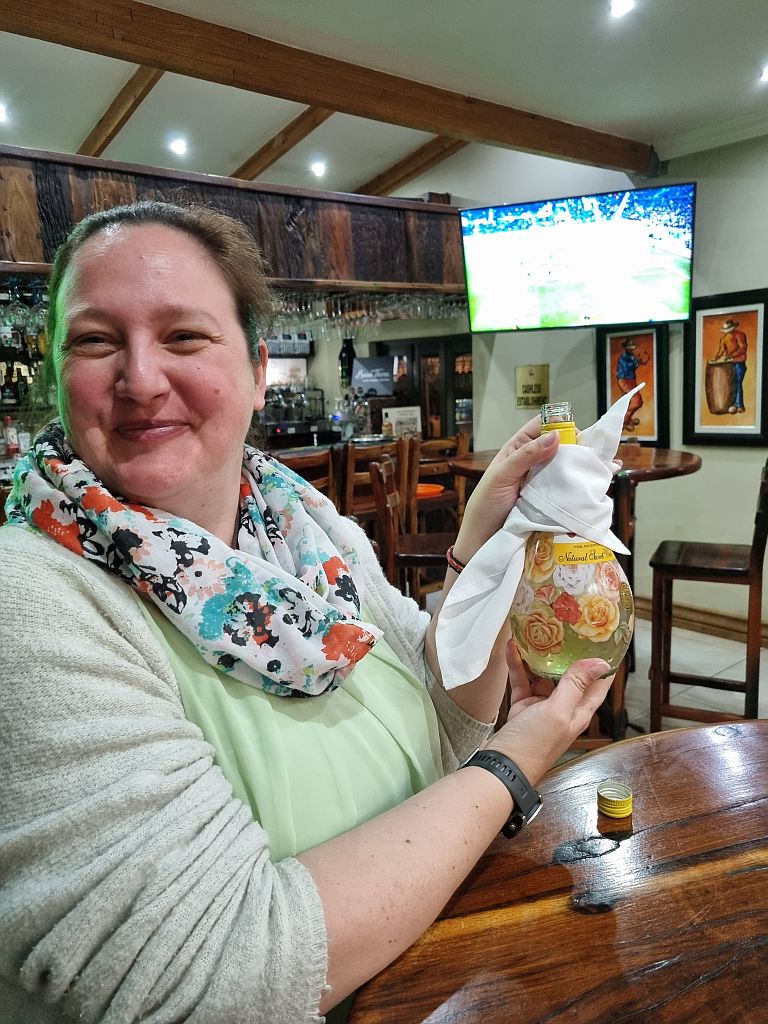 Meike wollte dann auch noch ein Dessert-Getränk, hat bei der Bestellung aber nicht auf die Gebinde-Größe geachtet und erst einmal eine 500ml Flasche Süßwein bestellt. Sie fand das aber zu dem Zeitpunkt ganz ok und freute sich sehr.