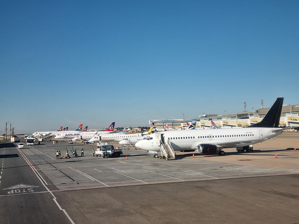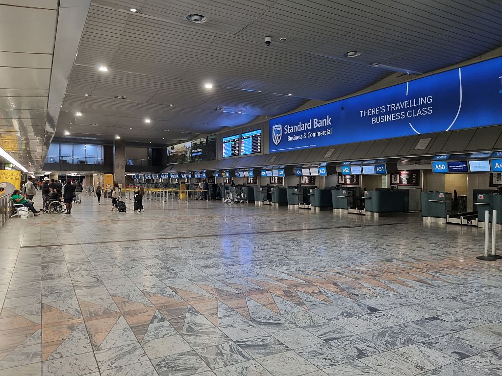 Selbiger grüßte uns mit gähnender Leere, denn so früh verlassen nur wenige Flugzeuge Johannesburg.