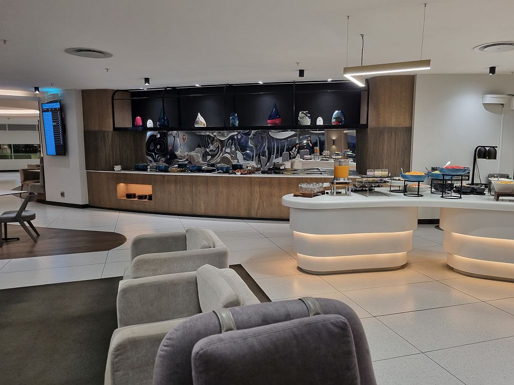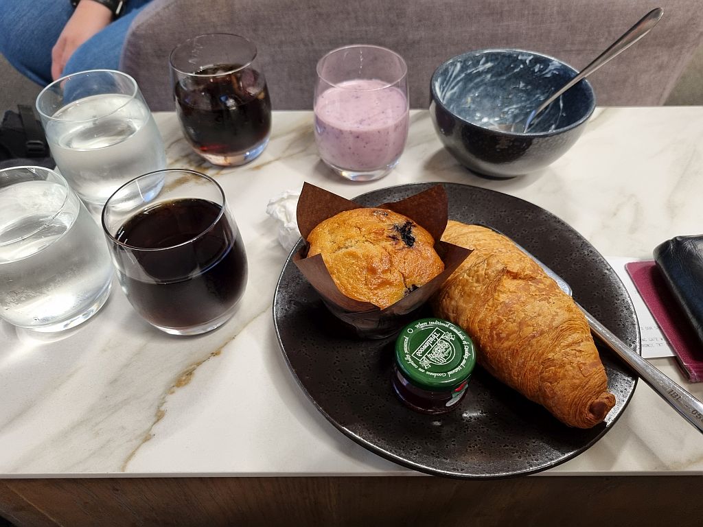 Und die Lounge war echt schön, sehr leer und mit einer guten Auswahl an kalten und warmen Frühstücksspeisen.