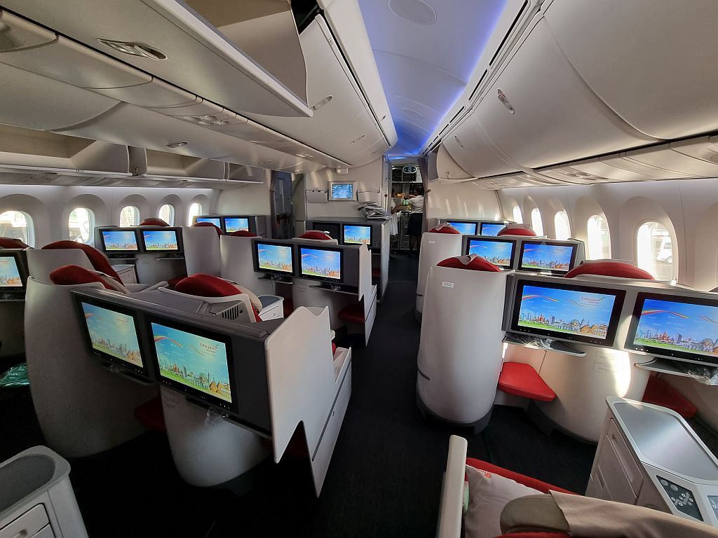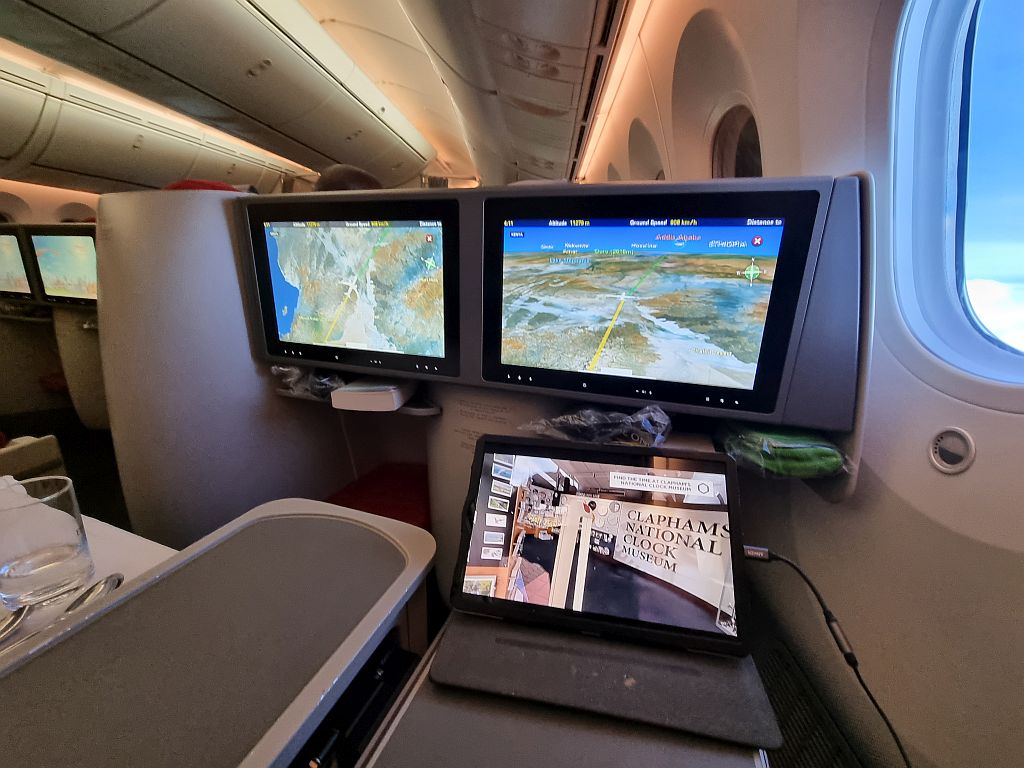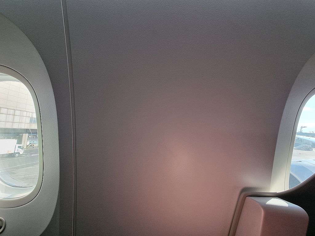Wobei … ein Nachteil gab es für Jens doch: In dieser Konfiguration der 787 fehlt in Reihe 4 ein Fenster! Super!