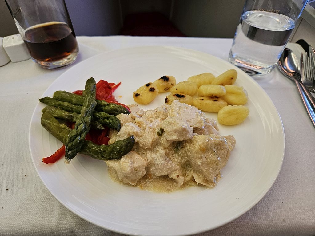 Meike dagegen bekam Hühnchen, was allerdings nicht so lecker schmeckte. Aber das Gemüse und die Gnocchi waren gut.