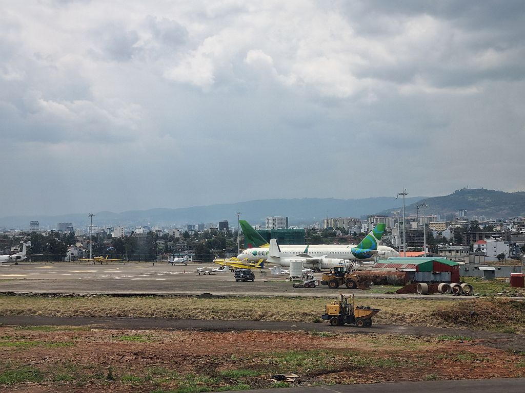 Addis Ababa selber mit seinen knapp 6 Millionen Einwohnern breitet sich dann im Ende des Landeanfluges vor unseren Fenstern aus. Beziehungsweise vor unserm Fenster, denn wir hatten ja nur eines … *grummel*