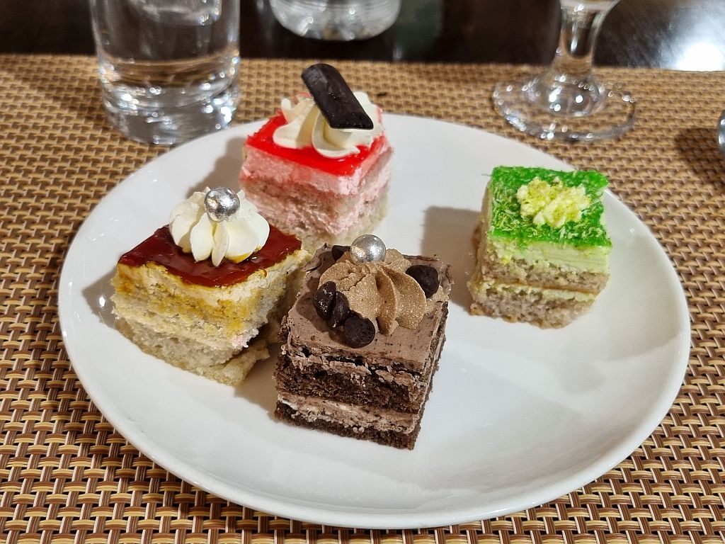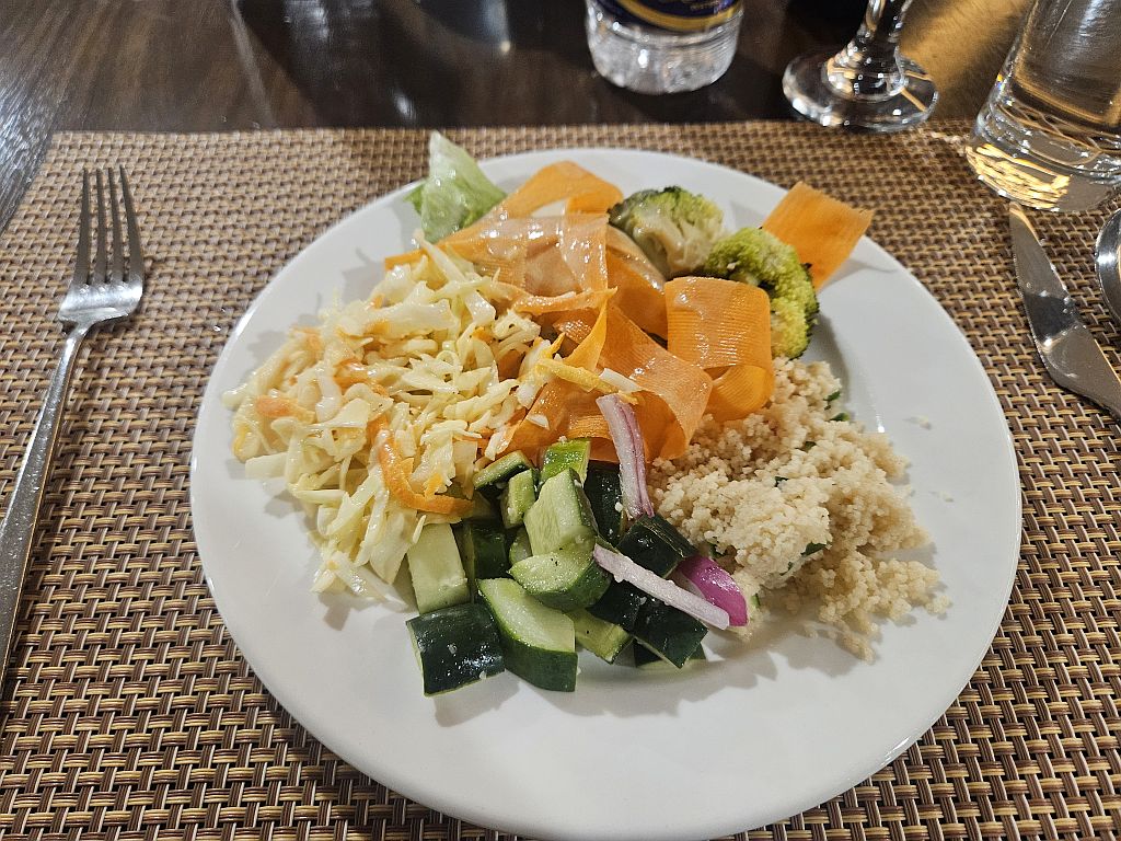 Unser Plan war, da wir erst um 1 Uhr nachts abfliegen würden, dass wir im Flugzeug nichts mehr essen würden, sondern gleich in die Waagerechte gehen und versuchen zu schlafen. Und auch das Frühstück, so zumindest unsere Idee, würden wir zugunsten der Schlaf-Maximierung opfern. Verhungern war ja nach dem Essen eh keine Option mehr.