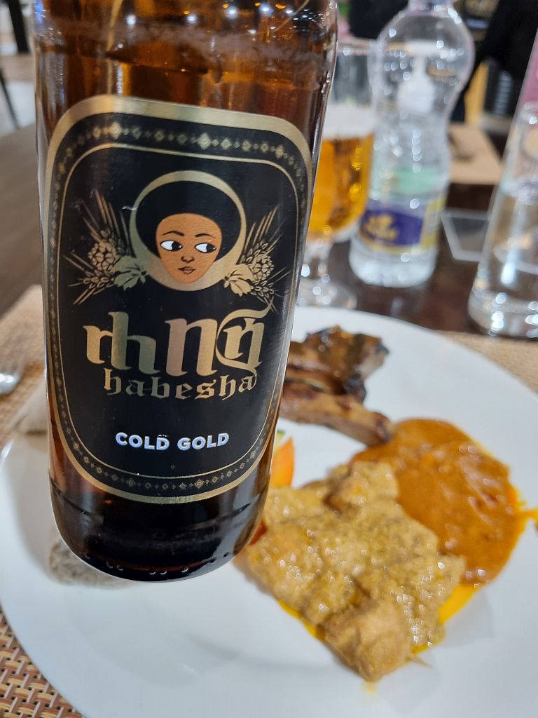 Und Jens beim Bier. Parallel dazu bei den äthiopischen Speisen.