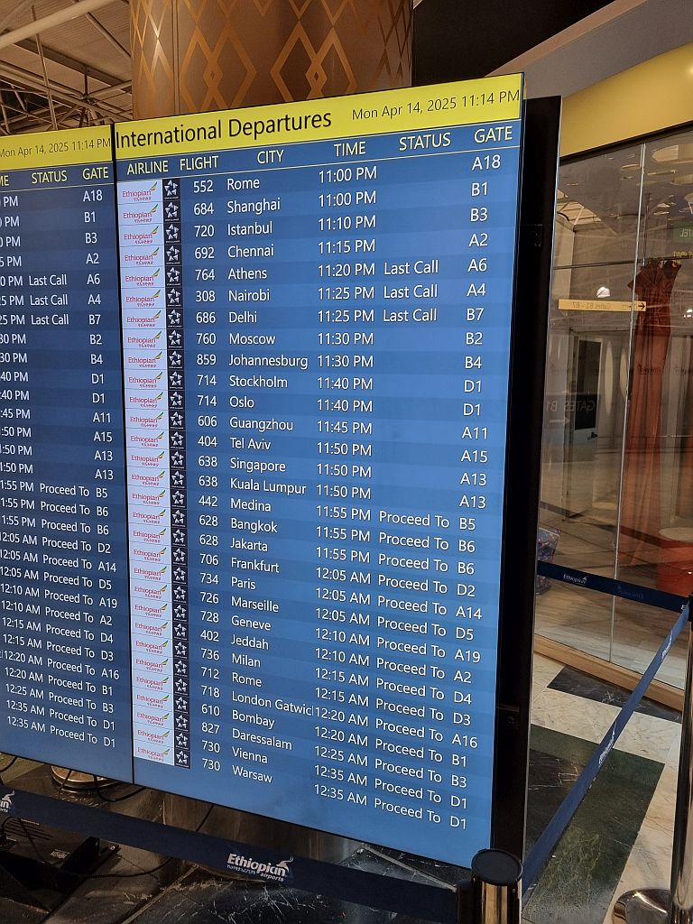 Wie man sehen kann, fliegen hier abends sehr viele Maschinen ab, von den D-Gates gingen dabei ausschließlich Füge in die EU ab. Einzelne Ausnahmen traten auch ihren Weg von anderen Gates an, aber unser Flug, der als der vorletzte aller Ethiopian Flüge Addis Ababa verlassen würde, ging auch von diesen ominösen D-Gates. Denn die hatten wir bislang nicht gesehen.