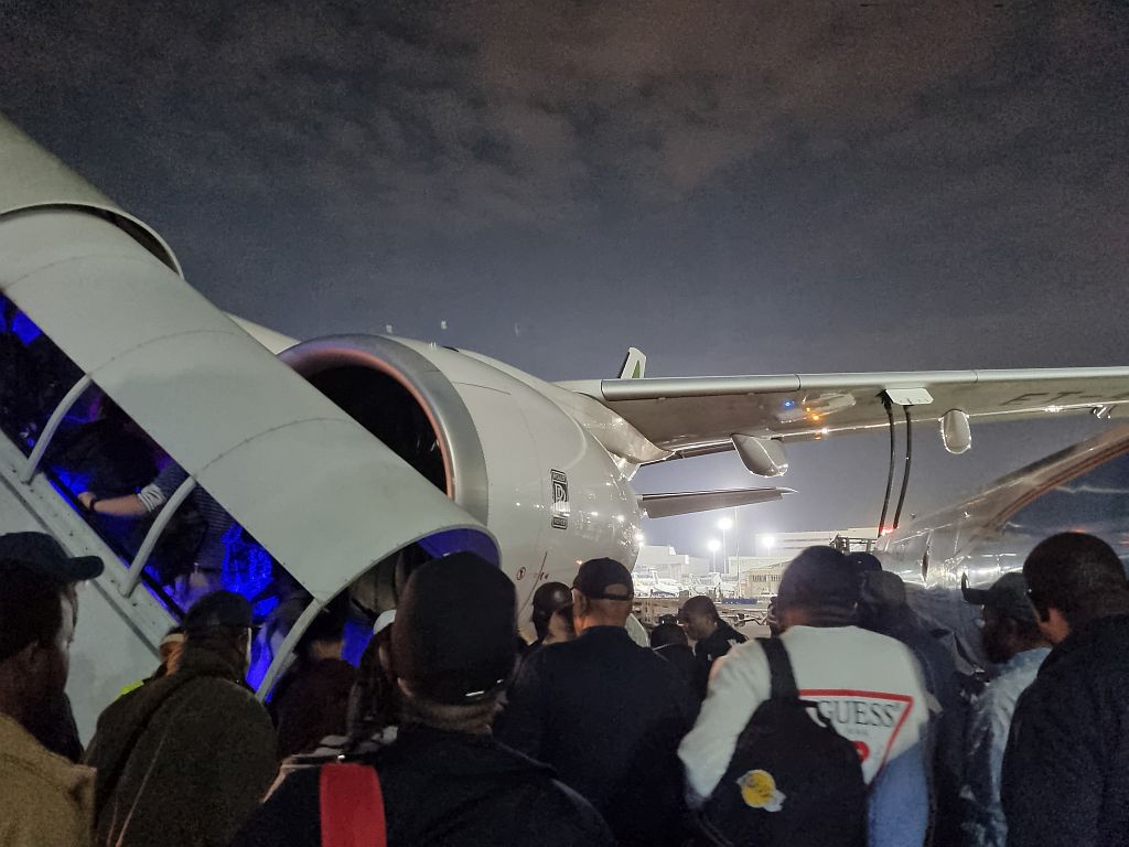 Glücklicherweise waren zwei Techniker von Ethiopian an Bord, wurden kurzerhand geweckt und mit der Lösung des Problems beauftragt. Nach ein bisschen herumdoktorn und einer Sichtkontrolle mit dem Handy, Meike war inzwischen auch wach und beobachtete das Ganze sitzend, denn ihr Sitz funktionierte natürlich noch.