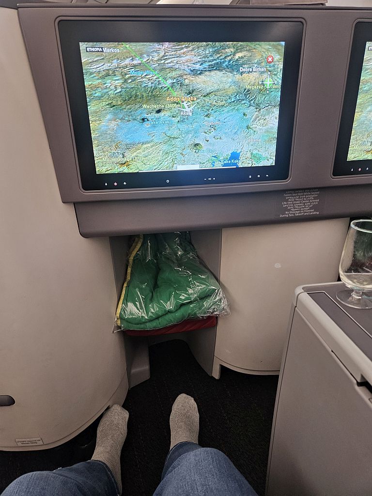 Also: Das Boarding heute war der erste richtige Minuspunkt für Ethiopian, die Sitze im A350 mit ihrem Mange an Ablageflächen waren ebenfalls ein Minus. Das sollte es aber auch gewesen sein.