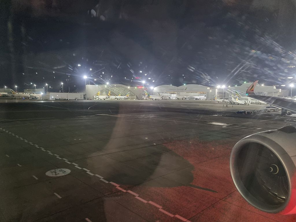 So etwa gegen 1:15 Uhr wurde das Licht gedimmt und es ging auf die Startbahn zu unserem letzten Flug dieses Urlaubs.