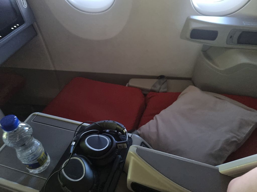 Da wir gleich schlafen wollten, gab es nur zwei Wasser für uns. Auf die Frage der super netten Stewardess, was wir zu Essen haben wollen, antworteten wir, dass wir möglichst viel schlafen wollen würden. Daraufhin meinte sie, dass das kein Problem wäre. Und wenn wir doch irgendwann während des Fluges was zu Essen haben wollen, sollten wir gerne zu ihre kommen, sie würde uns jederzeit was vorbereiten.