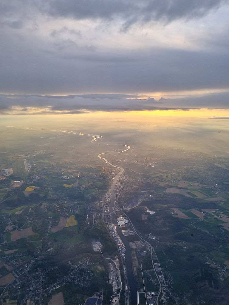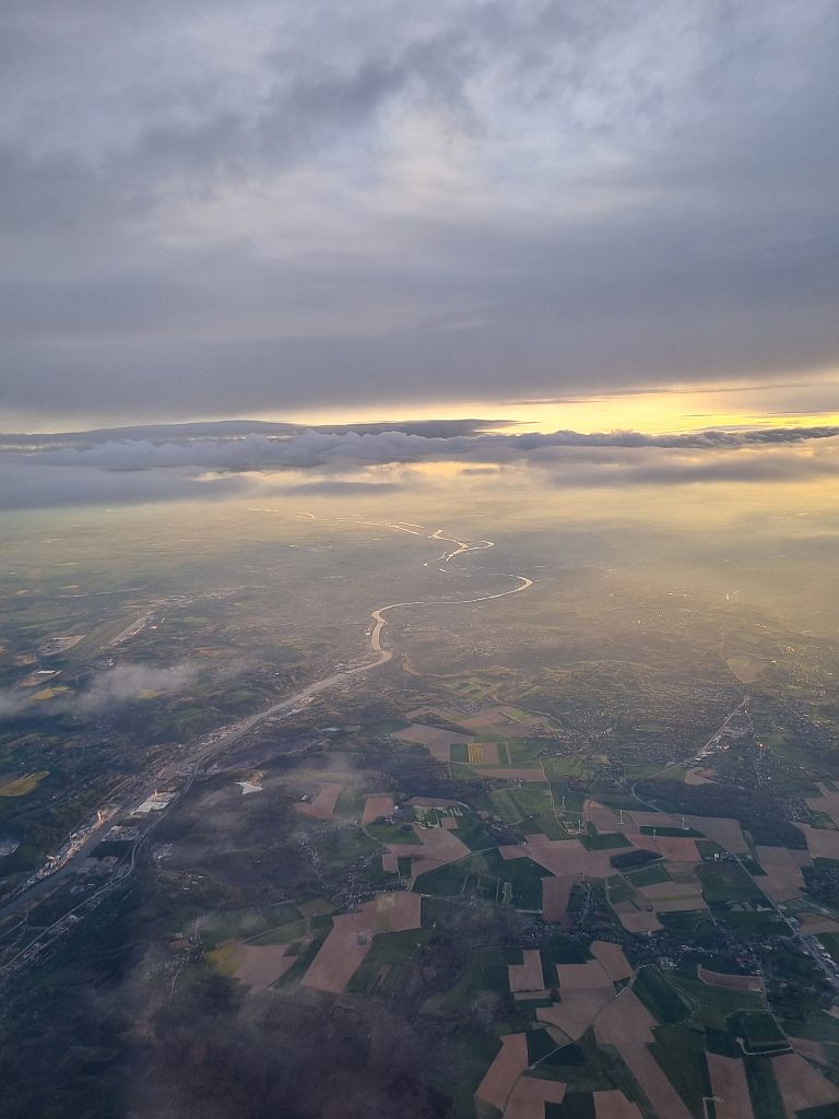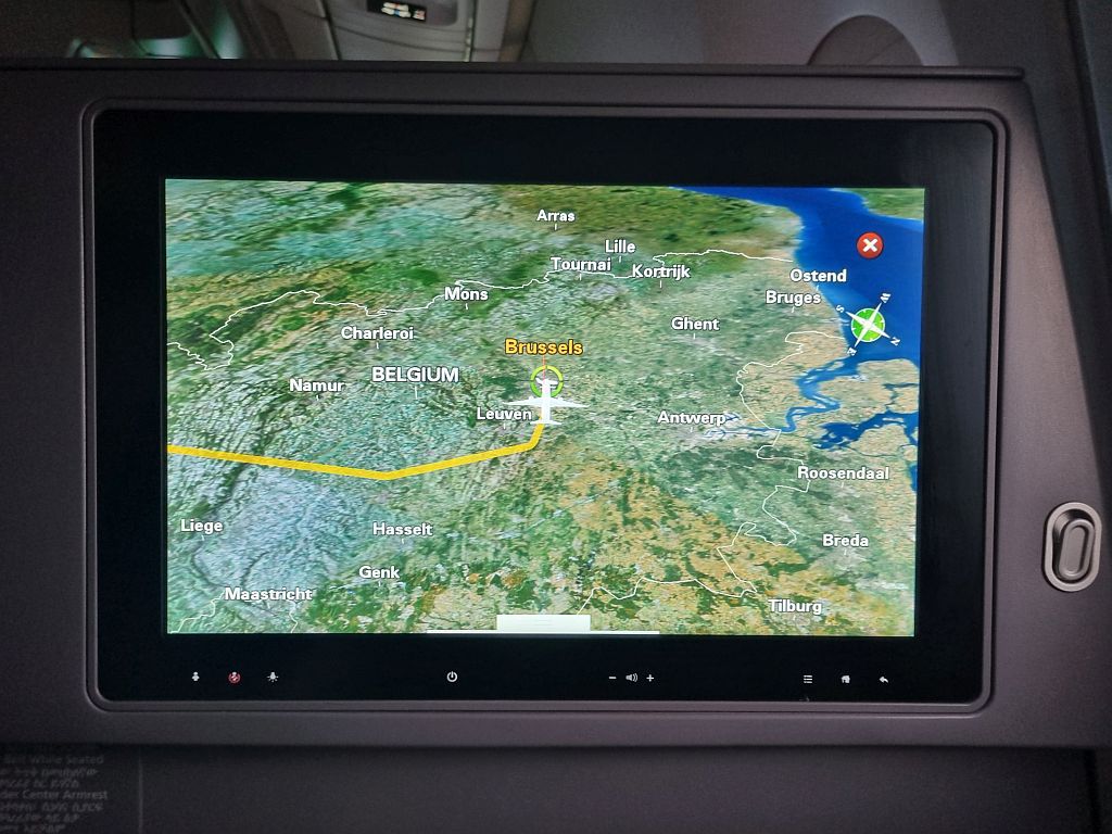 Die Kabine wurde langsam wach, Meike gönnte sich noch etwas Obst, Jens noch einen weiteren Kaffee. Und dann waren wir auch schon im Anflug auf den Flughafen in Brüssel.