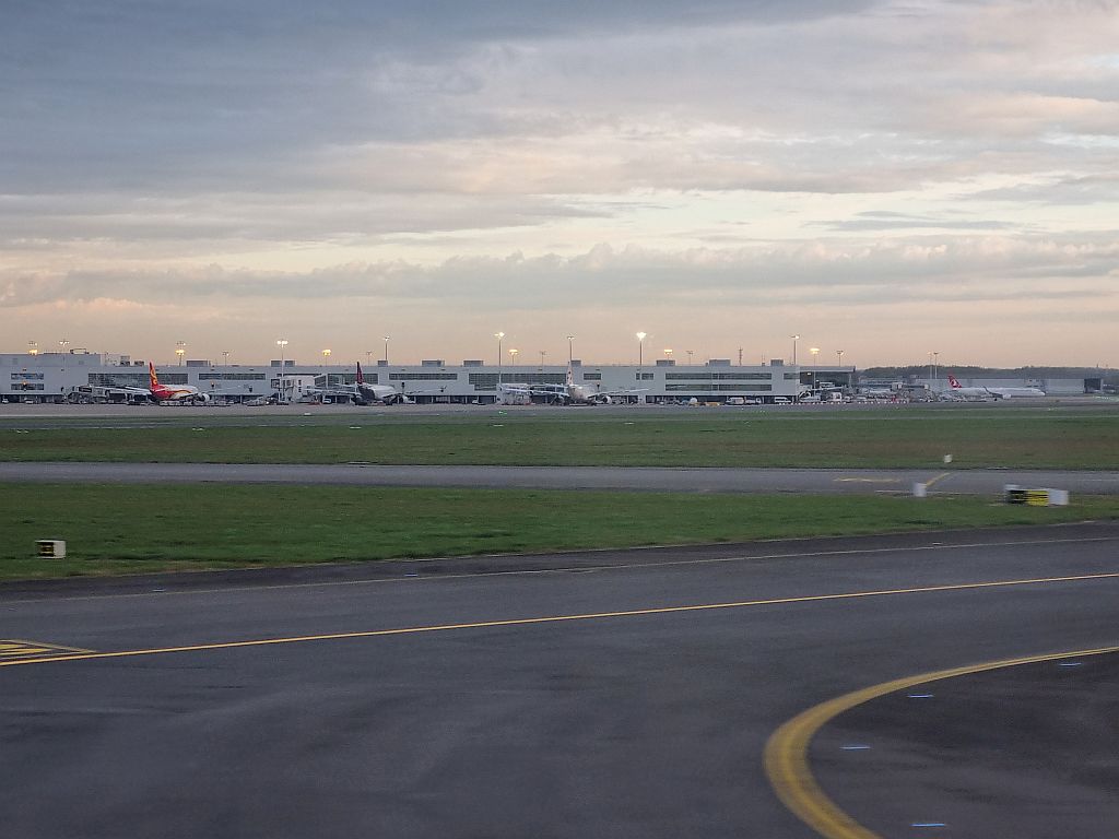 Also machten wir nach dem Essen einen kleinen Verdauungsspaziergang. Der Flughafen war inzwischen rappelvoll, was angesichts der ganzen Flieger, die hier abends und nachts starten, nicht weiter verwunderlich war. Die D-Gates waren etwa 15 Minuten von unserem Hotel entfernt und stellten sich als großer Bus-Gate-Bereich heraus. Gut, also wussten wir wenigstens, was uns erwartet.
