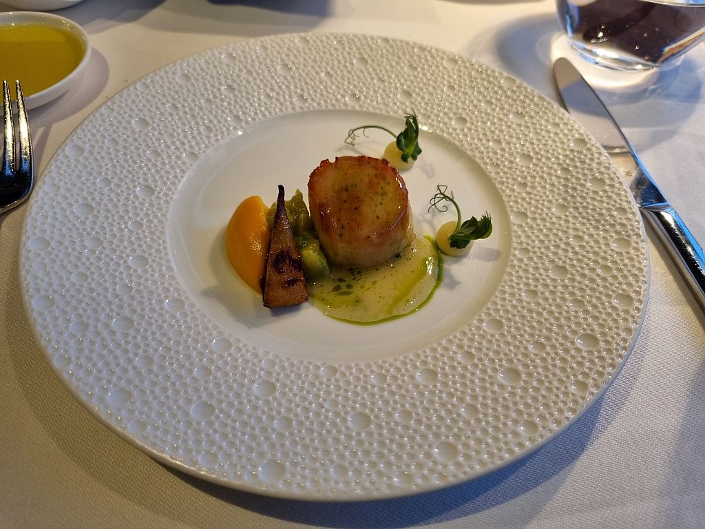 Für uns der schwächste Gang des Abends, wobei gerade das Bohnenkraut hier überraschend gut zur Jakobsmuschel passte.