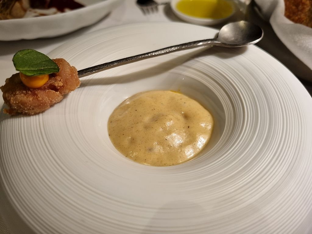 Verschiedene Pilze mit Trüffel verfeinert und mit einem guten alten Käse zusammengefügt. Komisch, dass wir auch gestern ja schon einige eher herbstliche Gerichte erhalten haben, irgendwie scheinen hier die Jahreszeiten anders definiert zu sein.
