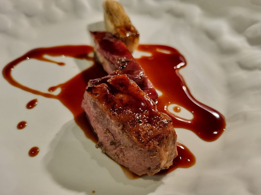 Der Hauptgang dann wieder eine schöne Präsentation, allerdings etwas kalt am Tisch angekommen. Lamm mit Kartoffel und Artischocke.