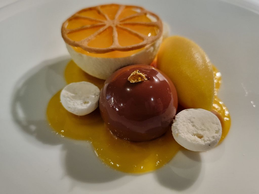 Der Nachtisch nannte sich dann sehr poetisch „Two Trees in a Battleship“ und war eine Kombination aus Schokolade, Mandarinen und Zitronengras.